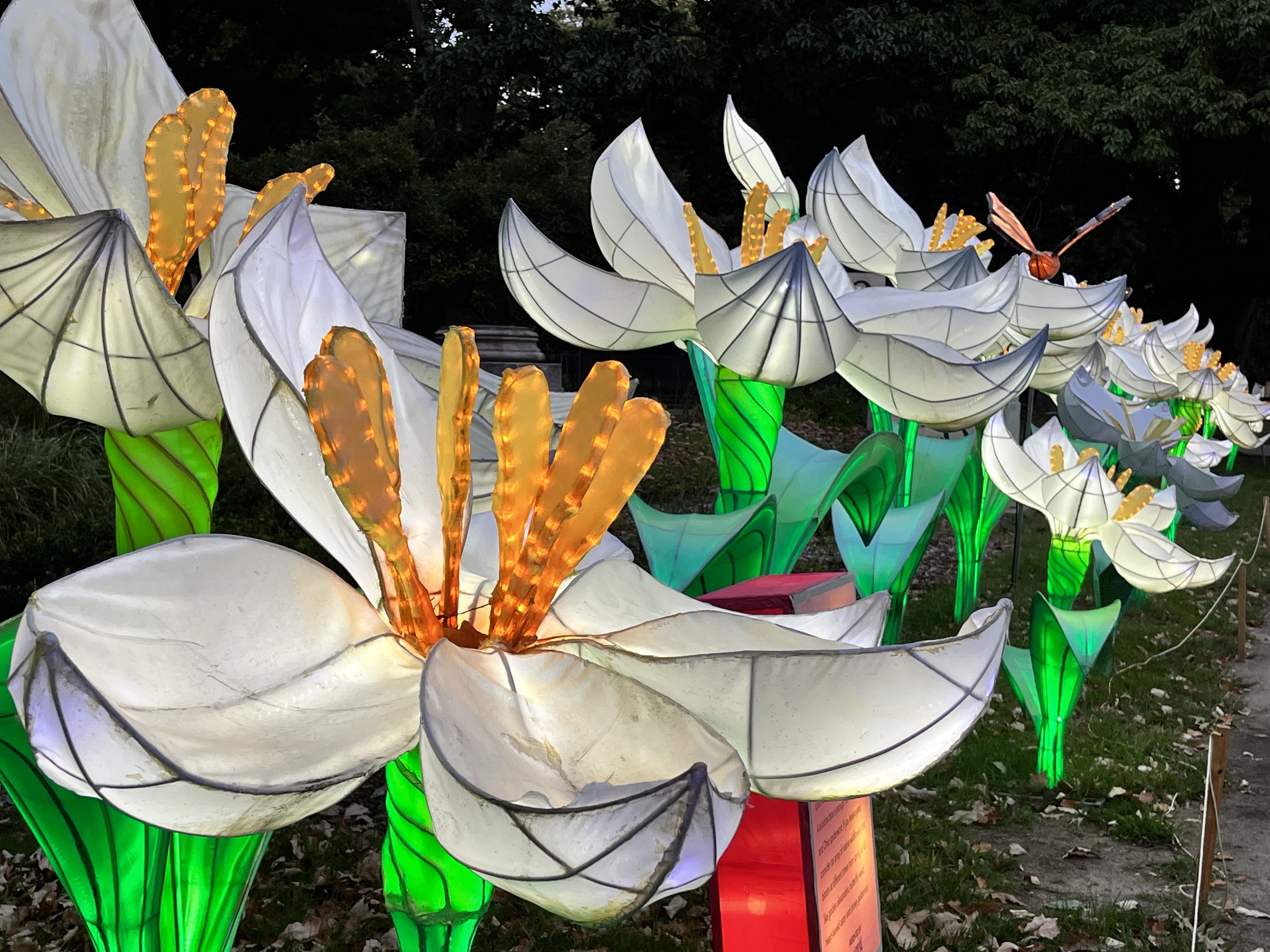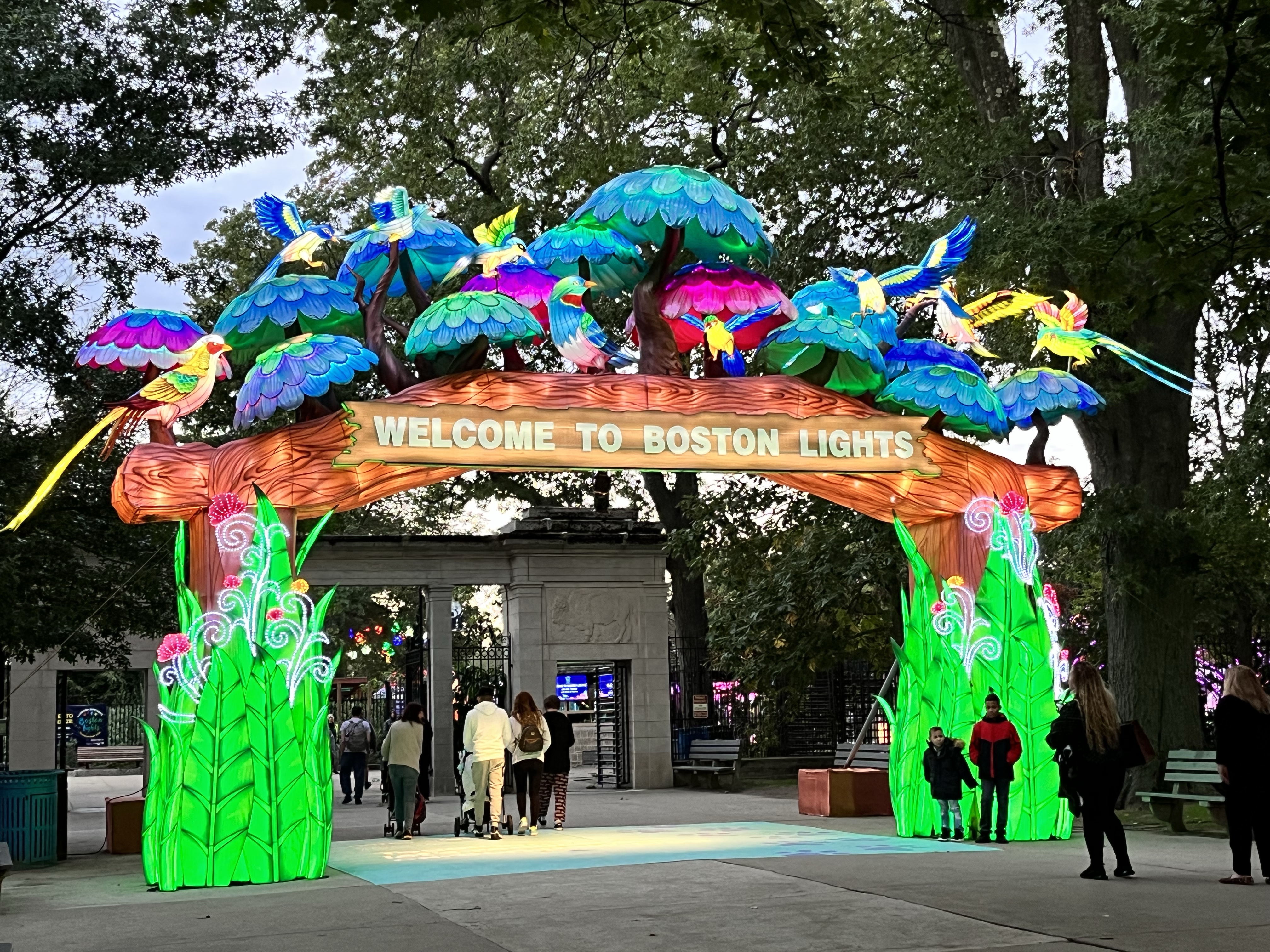 We visited Boston Lights last year at Franklin Park Zoo and decided it was worth taking our daughter back to this year. I recall recommending you visit earlier in the evening for parking purposes as well as reduced crowds and this recommendation remains the same EXCEPT driving into the city at that time of day is a crap shoot. So if you can’t manage to get there, perhaps you will enjoy these photos. I was pleased to note that the displays are not just the same ones rotated in from last year. The show is open until October 23. The experience had a different theme (solar system/stars) and the displays additionally feature occasional blowing “smoke” in addition to motion and sound effects. We had a great time and I would go again another year with or without grandchildren.