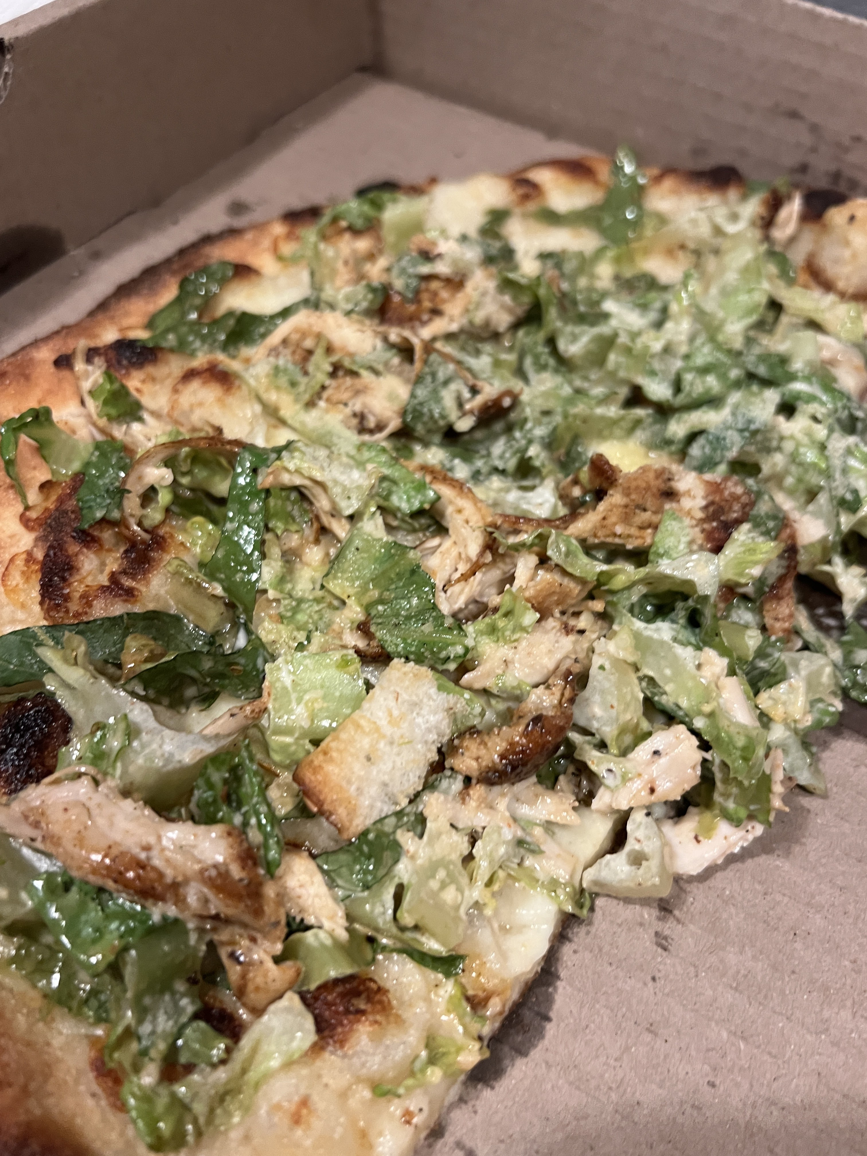 Chicken Ceasar Pizza- chopped romaine, chicken and pecorino 🥗🍕