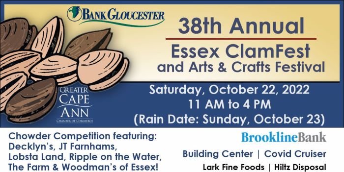 Save the date for one of the area’s favorite events. Sharing information from the Cape Ann Chamber of Commerce regarding Essex Clamfest to be held at Sheperds Memorial Park October 22. Follow here: https://fb.me/e/2UEQGFLkr