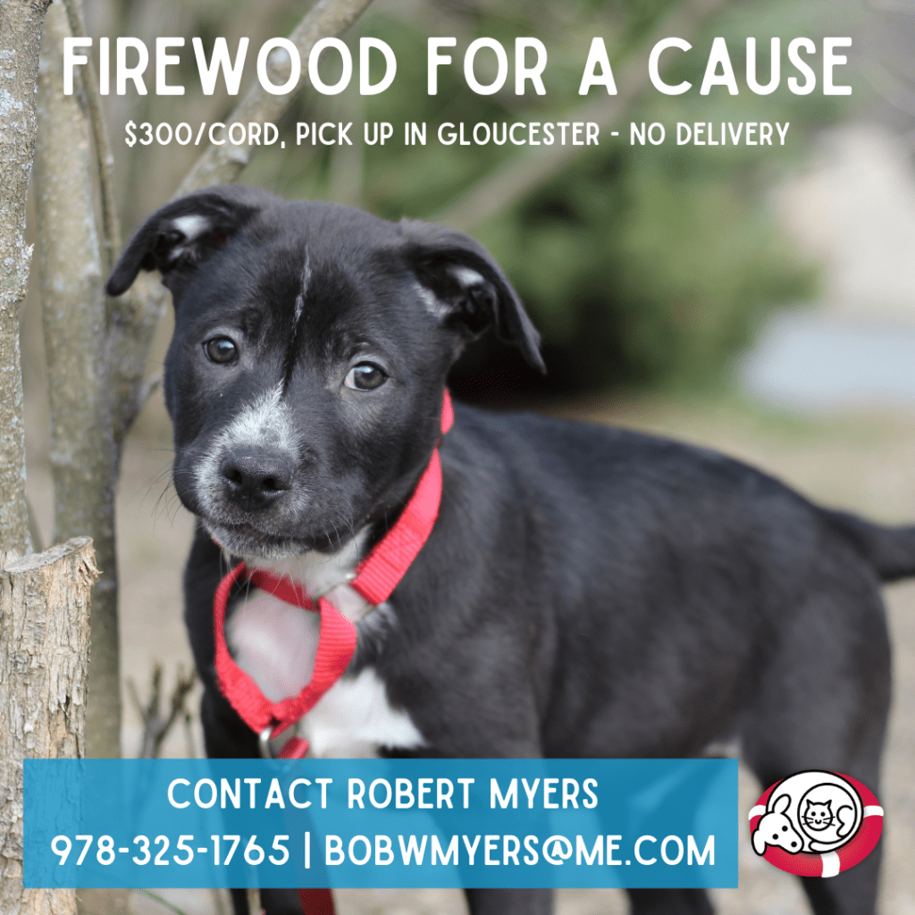 My husband Bob is selling split firewood for $300/cord. You pickup, no delivery. 100% of the proceeds go to Cape Ann Animal Aid. Here is a link from their website: https://www.capeannanimalaid.org/uploads/1/0/6/7/106722865/social_square__25_.png