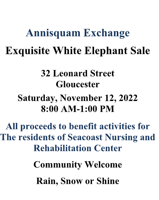 Annisquam Exchange Exquisite White Elephant Sale November 12th