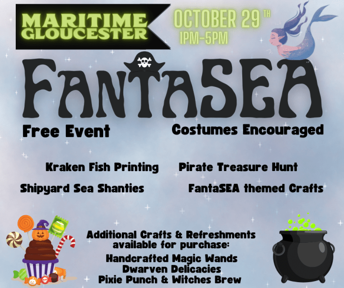 Maritime Gloucester invites you to get in the Halloween “Spirit” Saturday, Oct 29 from 1pm to 5pm.
