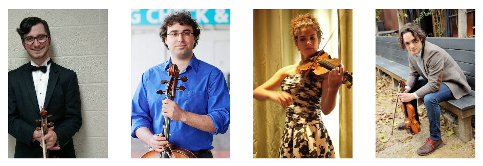 The concert program includes: Florence Price’s Juba from String Quartet No. 2: Scott Moore and Erica Pisaturo, violins; Brandon White, viola; Seth MacLeod, cello; Scott Moore’s Duo selections: Scott Moore and Erica Pisaturo, violins; William Grant Still’s Danzas de Panama: Scott Moore and Erica Pisaturo, violins; Brandon White, viola; Seth MacLeod, cello; Grateful Dead’s Truckin’, arranged by Minsky: Seth MacLeod, cello; Rachel Grimes’ Egon and Gertie – Violin/Cello Version: Scott Moore, violin; Seth MacLeod, cello; Scott Moore’s Fiddle Tunes (solo): Scott Moore, violin; and Dvorak’s American Quartet, 1st Movement: Scott Moore and Erica Pisaturo, violins; Brandon White, viola; Seth MacLeod, cello.