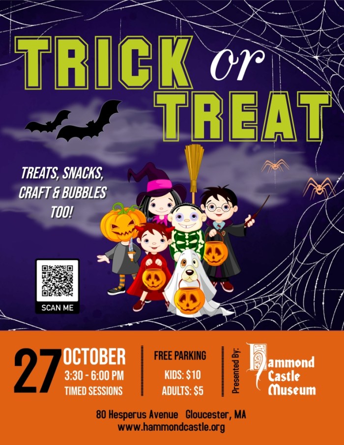 Timed Trick or Treat sessions will last approximately 15 minutes with five treat stations set up within the Castle starting on our drawbridge and leading into the Great Hall. The program will conclude with bubbles, a craft, spooky stories and snacks outside at the Arches.