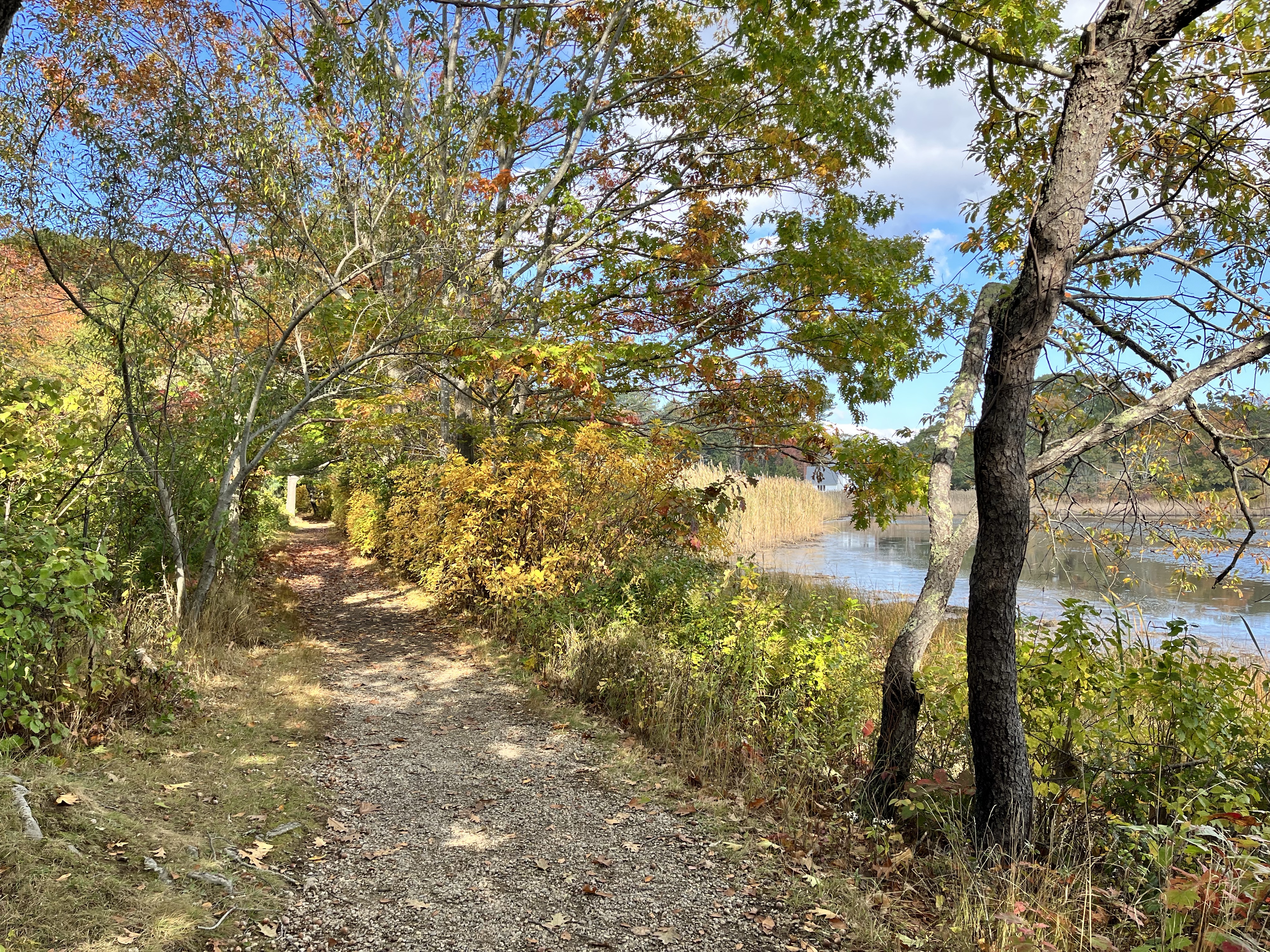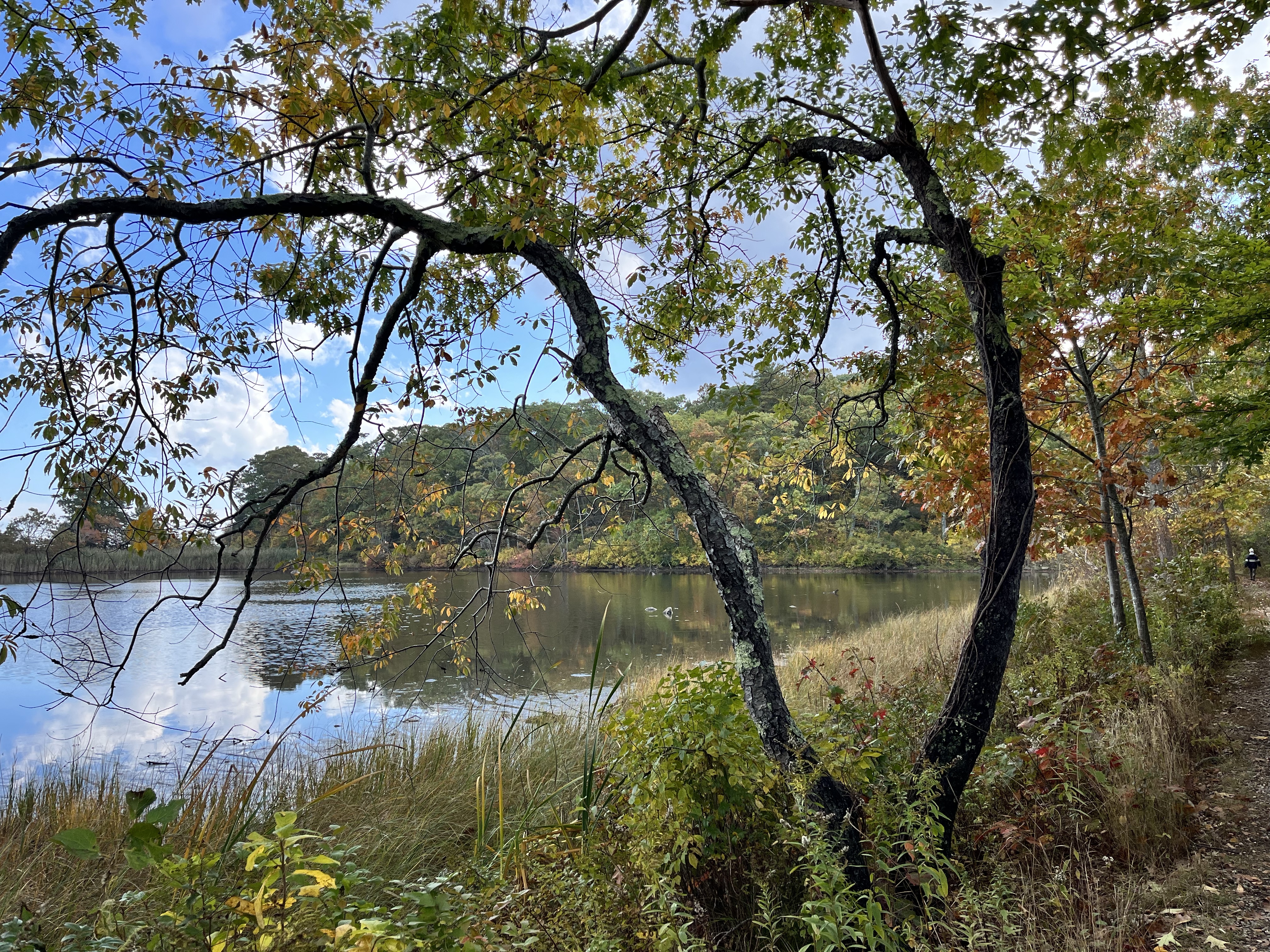 I had not been to Coolidge Reservation in quite a while so I decided to take a walk on a recent pretty fall afternoon. It was refreshing and fulfilling to walk the quiet paths, look at Clark Pond and the leaves and contemplate how fortunate we are to have these properties available to us. Although it is listed as being in Manchester, it’s a quick ride from my Magnolia address to the small parking lot and entrance. It’s a very popular spot so it’s not uncommon to find the parking lot full. I used the Go Trustees app to help with the trail map and I found it spot on. I walked down to Magnolia Beach (the path to the Ocean Lawn is only open on the weekends according to the signage) and back without any issues except be warned there are many many tree roots especially at the beginning of the trail which could trip you up (speaking from experience). Perfect little fall afternoon respite.