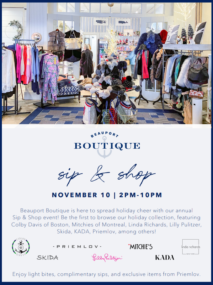 Beauport Boutique is here to spread holiday cheer at our annual Sip & Shop event!