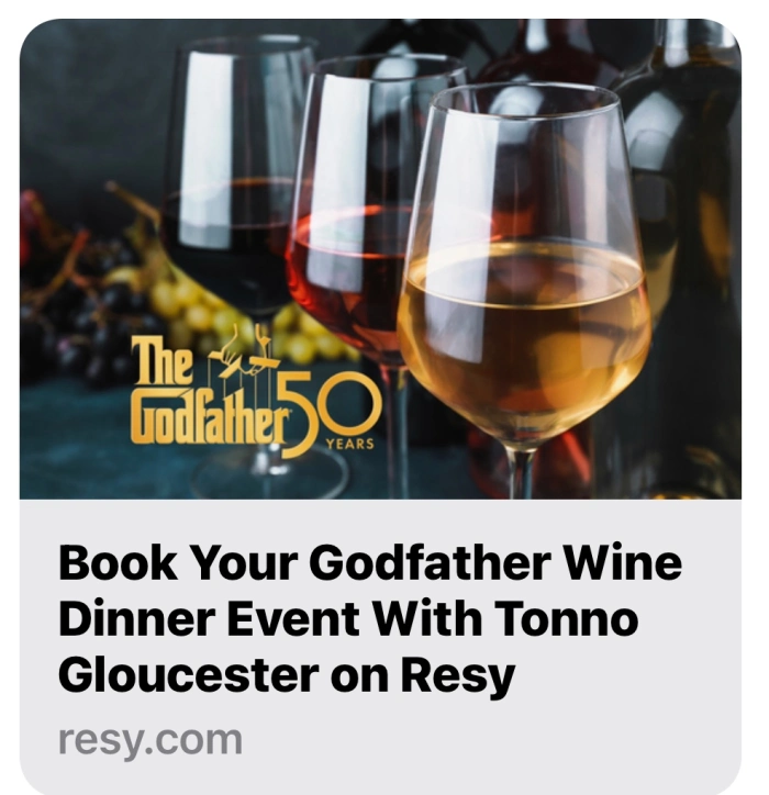 From Sicilian cannoli to tomato sauce with sausage, food and wine plays a dynamic and symbolic role in Francis Ford Coppola’s epic mob drama. Tonno will take you back to different scenes in the movie that food and wine played an integral part in The Godfather. “The Feast” Opening Sophia Sparkling Rose 1st scene Antipasto of baby gem lettuce, soppresata, provolone, artichoke hearts, hardboiled egg, radish, pepperoncini, roasted pepper, marinated mushrooms, olives Heirloom tomatoes, garlic, olive oil, basil 2020 Alta Mora Etna Bianco 2nd scene Lasagna with bechamel & tomato Italian…