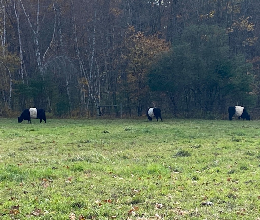 I’ve never seen cows like these. I really wish it was a better photo. When I first passed by the field they were close to the road, but I couldn’t stop. On my way home I made a point to find a safe spot to pull over and watch them for a bit. They had moved to the back of the field. I love their three bold “stripes”….I’ll have to do some research as to what type of cow they are. Unless anyone of you know!