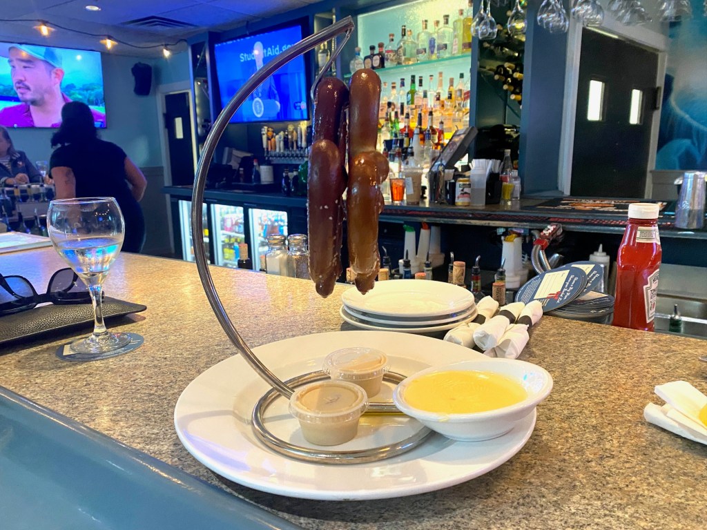 The Blue Marlin Grille warm pretzels. I met a couple of friends for a precious hour in between all of the obligations we each had one night last week. Pumpkin beer and some yummy warm pretzels did the trick.