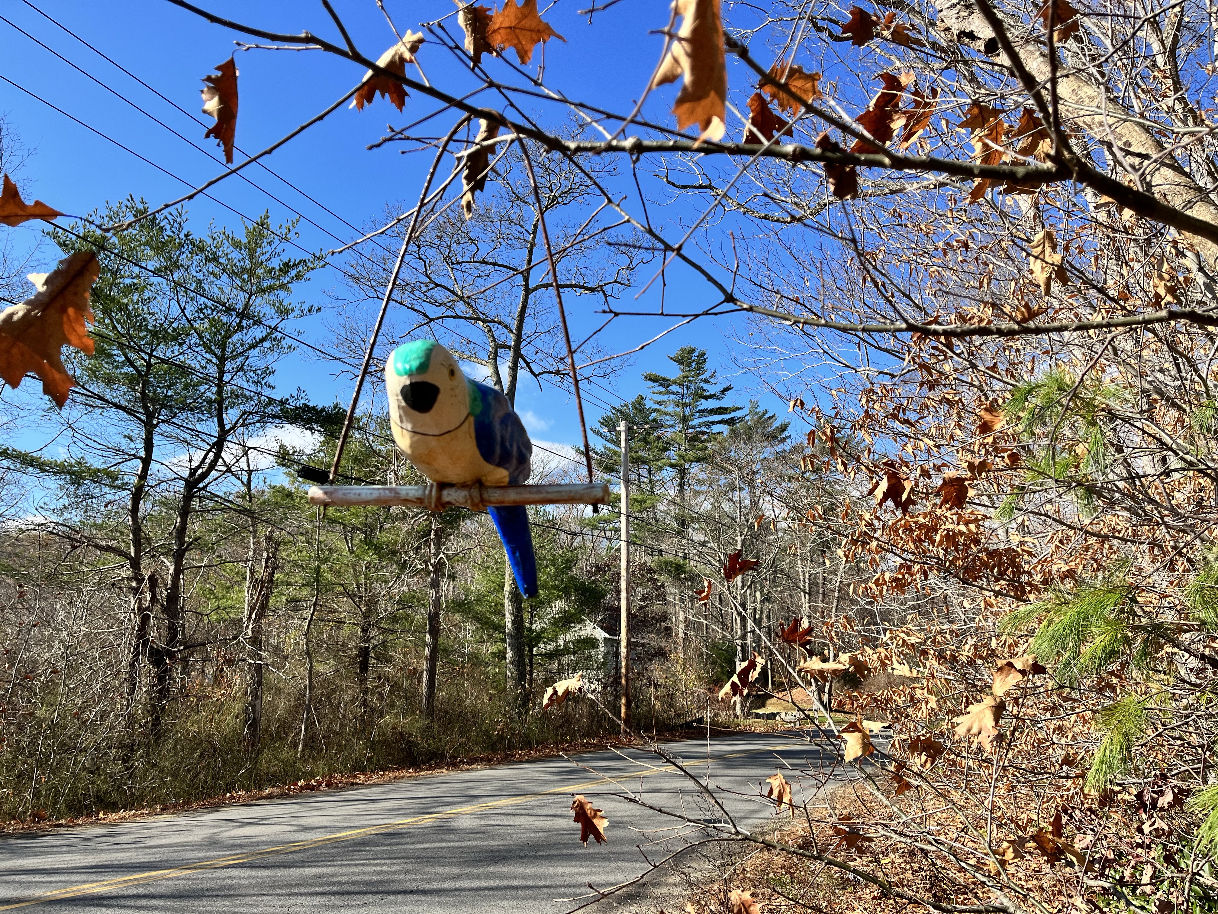 An unusual (perhaps tropical) bird was sighted recently on Magnolia Avenue! A spot of color amongst the dead leaves was delightful. If you go that way to take a look, stop by the Magnolia Library for the Holiday Fair 9:30 – 2 today! Food and crafts offered by some of your favorite vendors!