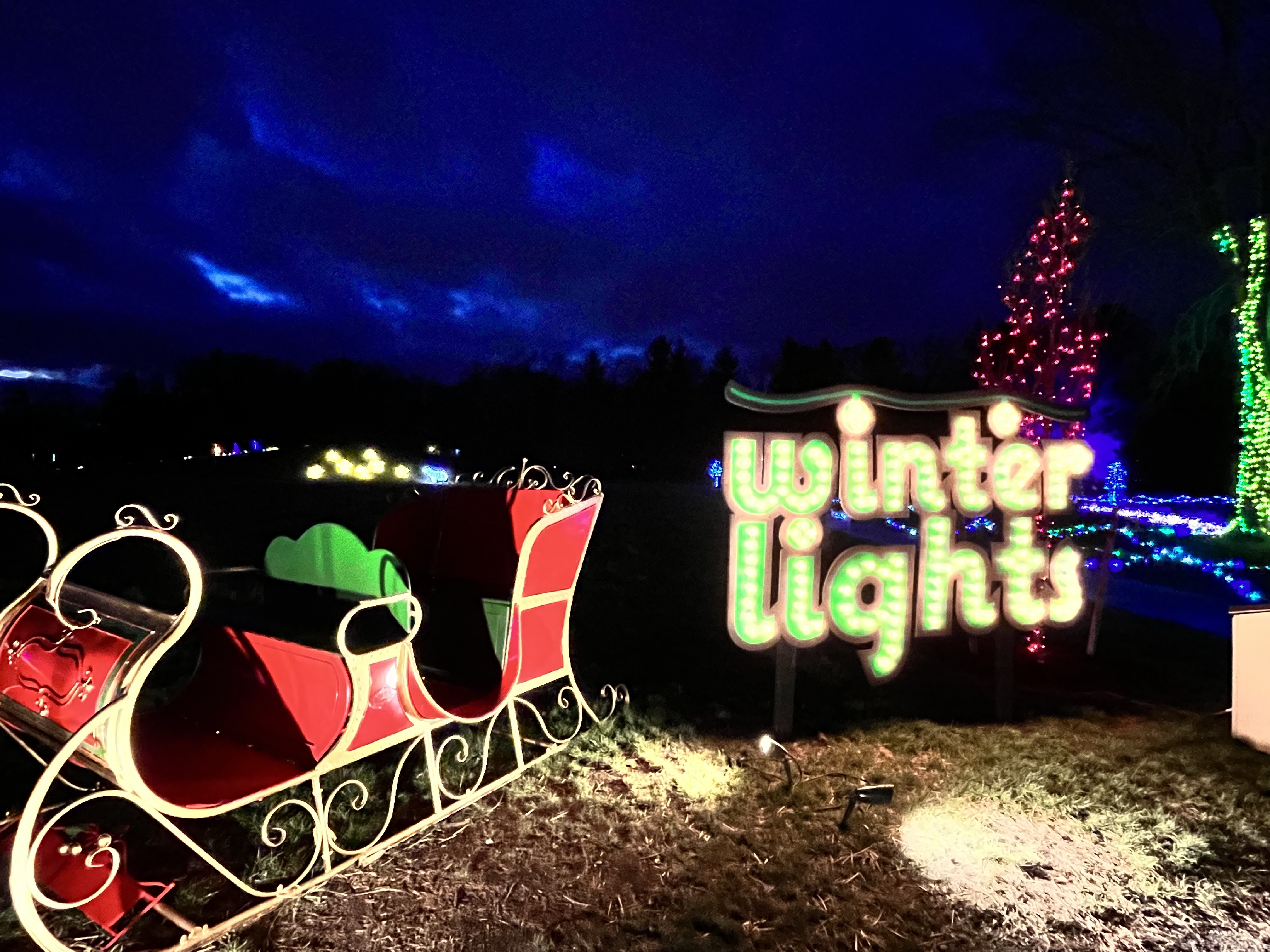 I work hard to restrain myself from putting out the holiday lights and decorations until it’s December. It’s a hold-over from those days when the kids were young and overly anxious about the holidays approaching. Anyhow, December 1 rolled around and I felt free to go wild. The first thing I did (after shopping Ladies Day) was to go to the Stevens Coolidge House Winterlights event put on by the Trustees. What a joyful walk we took around the grounds admiring the thousands of lights and the piped in holiday music. GMG Jim thinks it’s the best light display he’s ever been to. I LOVE lights…if it says “lights”, I am checking it out.