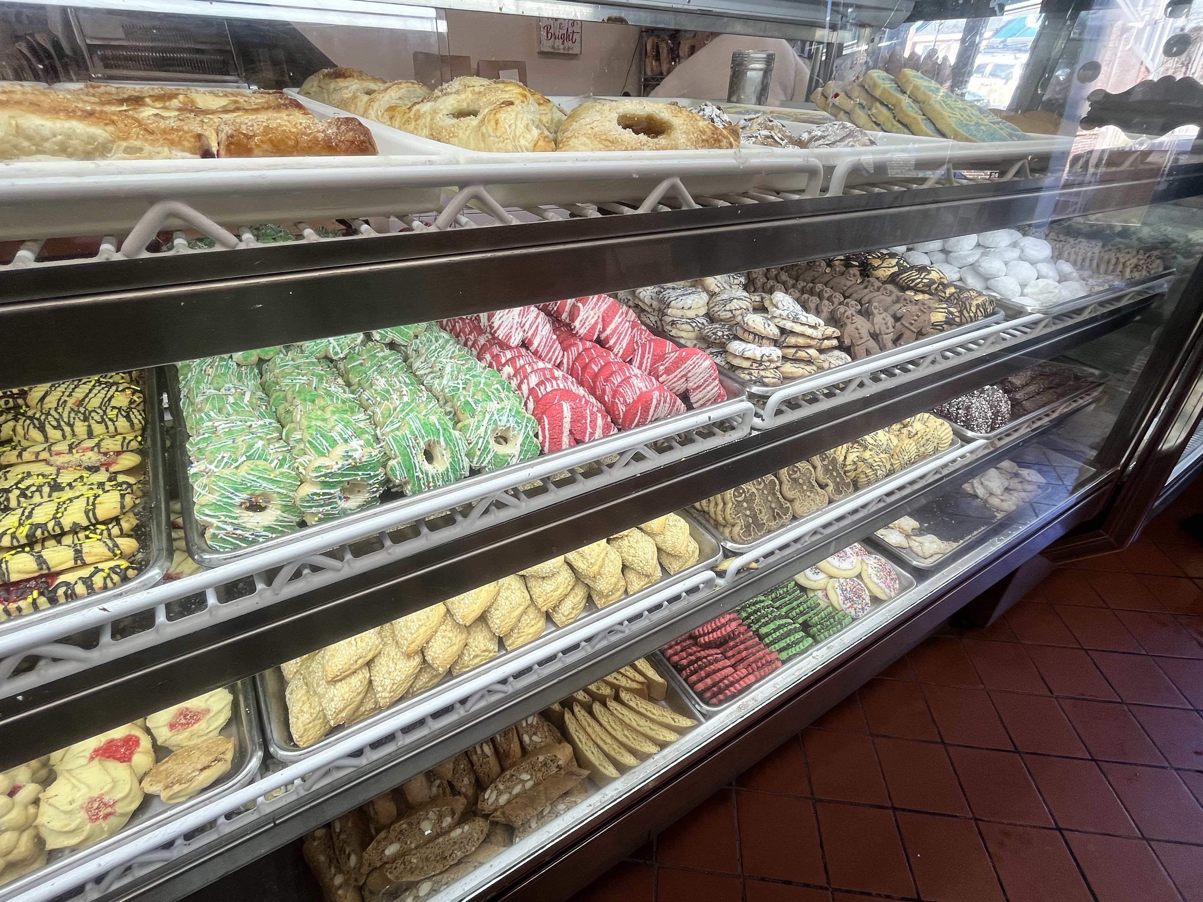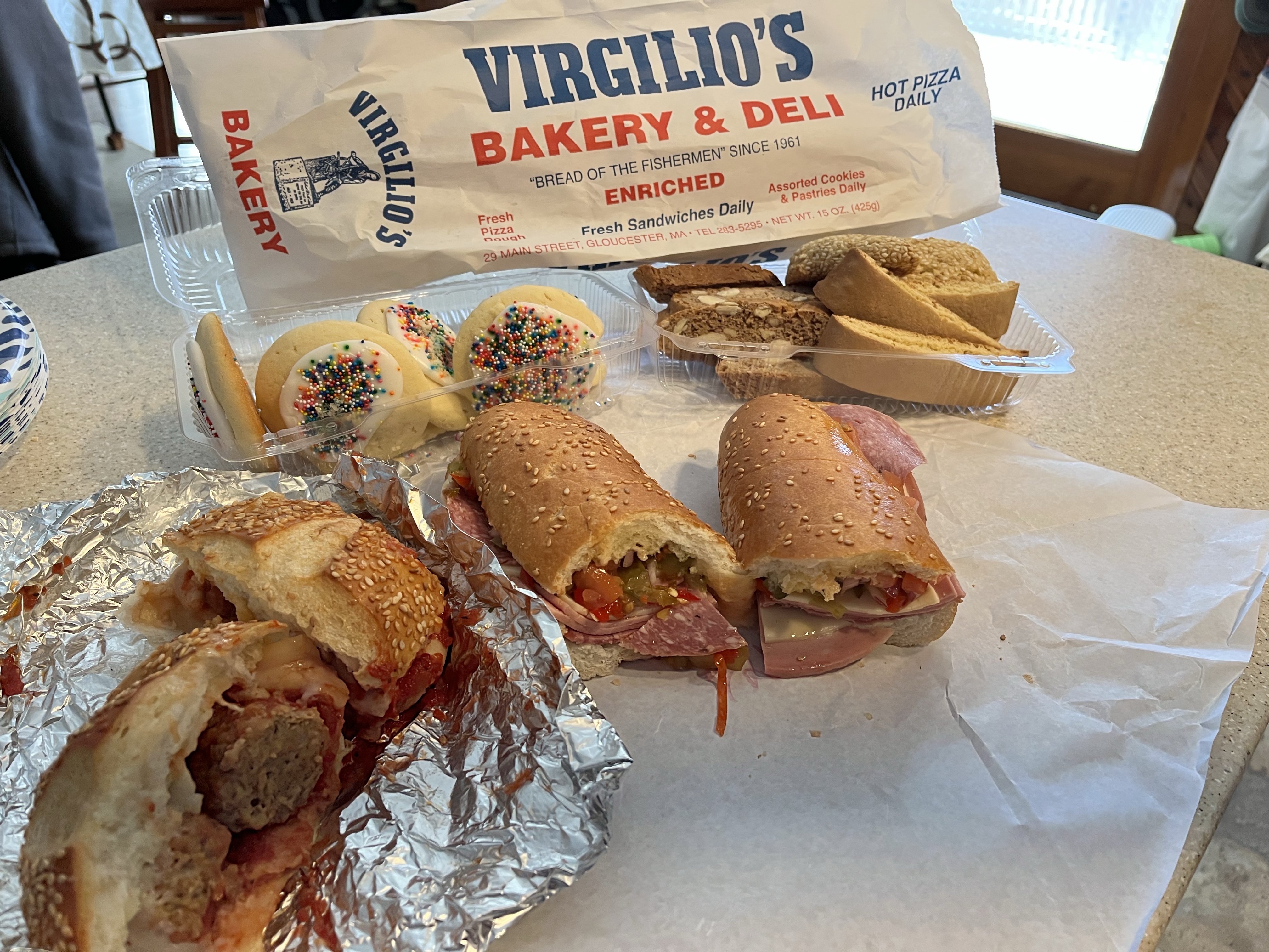 Sometimes you need to do your own self a favor during the holidays so we stopped at Virgilios on Main St. for lunch and treats. Though I was tempted by the hot dish offerings of the day, since it was Monday I asked for a meatball sub. Jim got the St. Joes. We added some bread and cookies and had ourselves a feast. I wish I could share the smells with you! The festive music adds quite a lot. See you down there sometime soon!