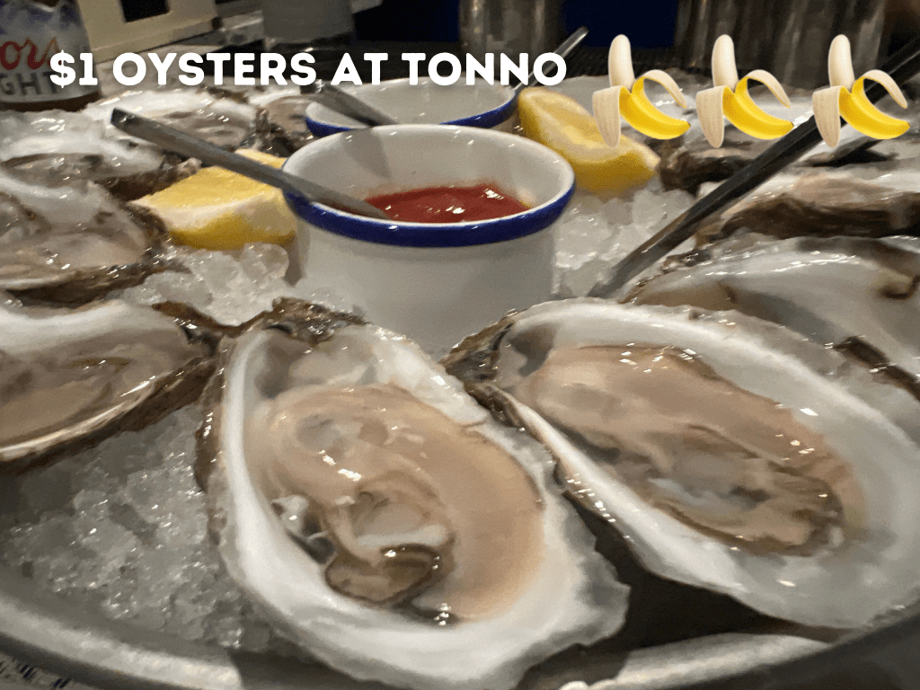 Now for example a Triple Bananas Rating I think we can all agree on are the $1 Oysters during bar bites hours at Tonno.