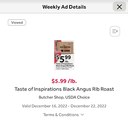 The Annual Stop And Shop Pre- Christmas Rib Roast Sale Is Live At $5.99lb. Market Basket Coming In at $9.99Lb For Semi-Boneless