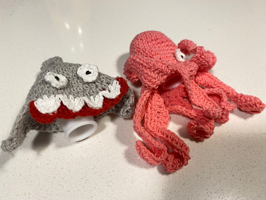 Yesterday I asked if anyone knew what the cute little knitted shark and octopus “caps” were that I posted. Lots of great guesses, but the few who guessed “Banana Caps” were correct. Evidently….as seen on shark tank. Nana Hats are designed to prolong the life of bananas, “It works by inhibiting the ethylene gas naturally emitted by fruits causing them to ripen. Nana Hats slow down the ripening process.” Sometimes we go through a ton of bananas because we make a lot of smoothies in my house. Other times, when we get off schedule or are extra busy….we don’t…and then our bananas go bad.