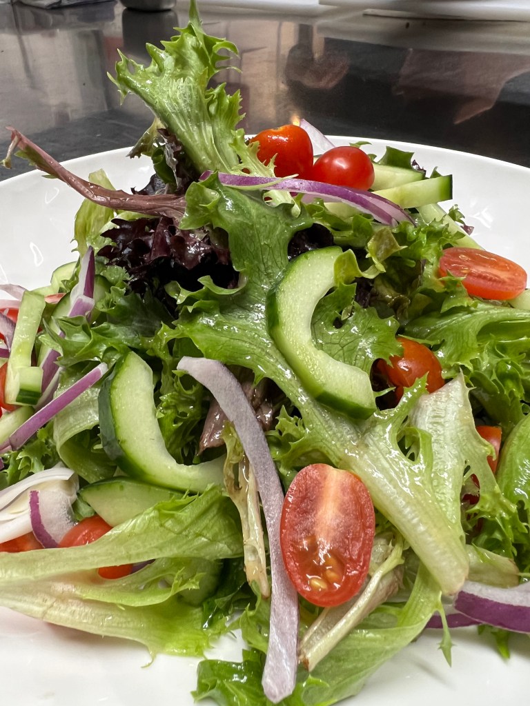 ◦ House Salad- mixed baby greens, heirloom cherry tomatoes, cucumbers, red onion, served with house made balsamic vinaigrette