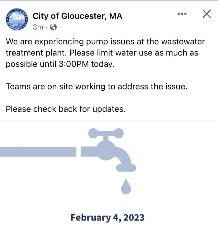 Sharing information from the City of Gloucester regarding water issues today Sat Feb 4 2023.