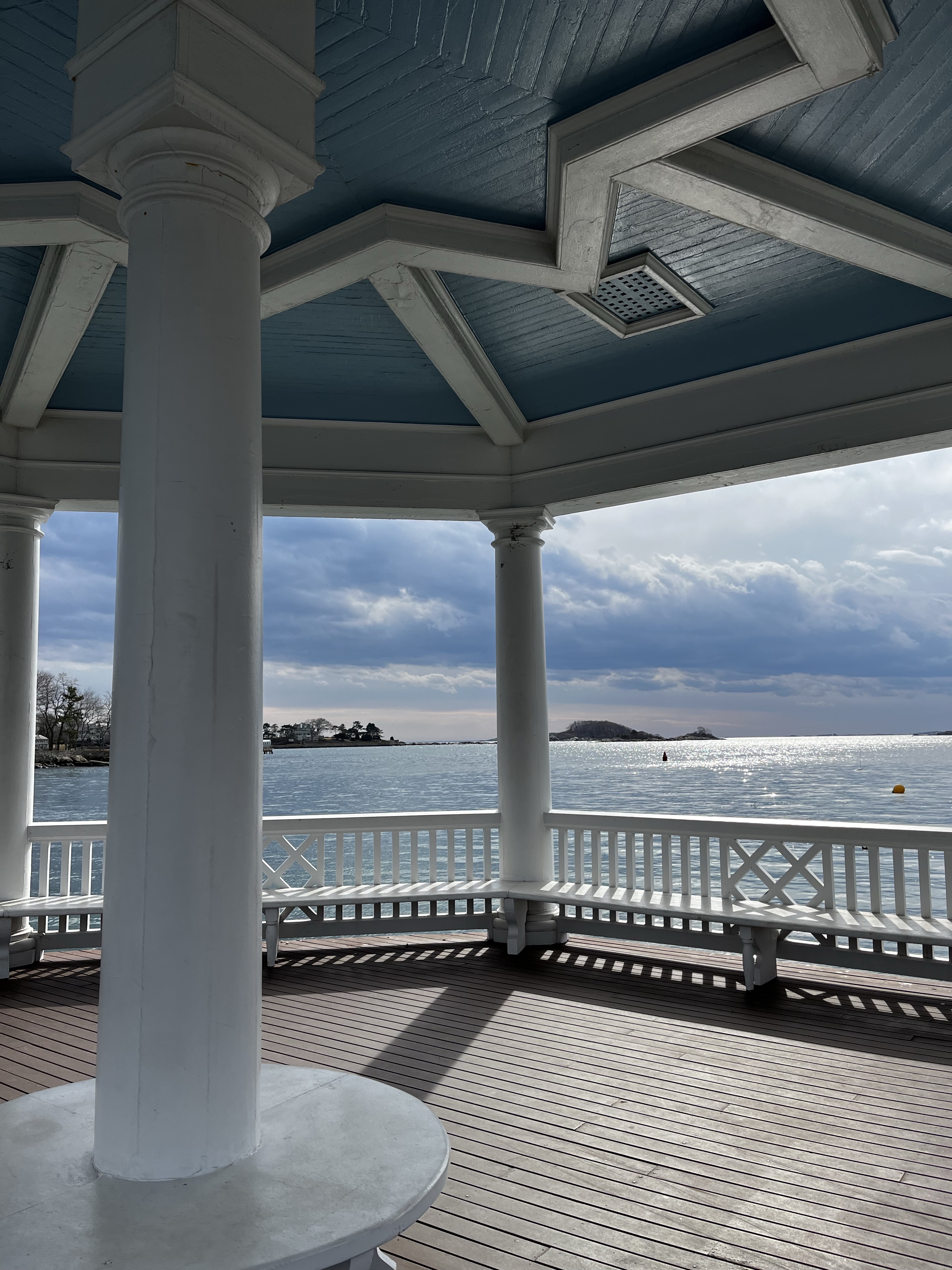Although it later turned into a beautiful day, the clouds were a bit threatening when we drove down to Tuck’s Point in Manchester yesterday. I thought it was still pretty, especially the gazebo. Hasn’t it been a glorious start to vacation week for the school families?