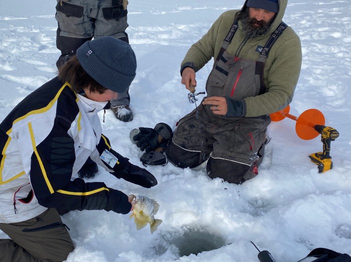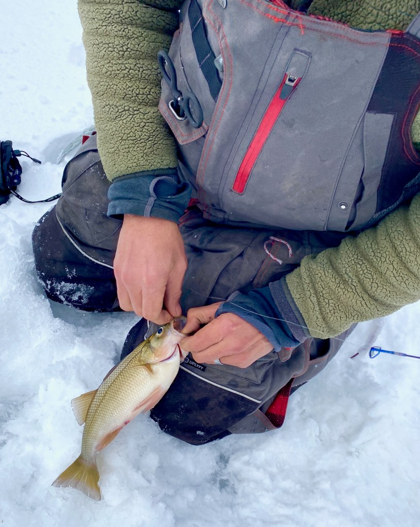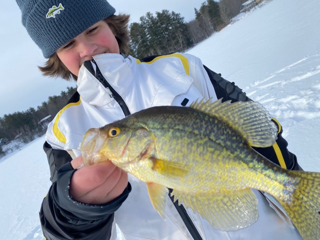 Finn and I went ice fishing last weekend. When a free day of no work or hockey presented itself, I asked Finn what he wanted to do (skiing, indoor golf, Dave and Busters….). His answer, no surprise, was fishing. 7 Degrees or not. So, I sent a message to the “Fish Nerds.” We’ve ice fished with Clay and Vinnie four times in the past. They immediately fit him in early the next morning and we made the really easy two-hour drive to Danforth Bay Camp Site to meet them on the lake. While it was definitely cold, they provide the tent with heaters for breaks from the elements…and it really wasn’t that bad. Finn and his buddy caught a total of about 12 fish…including the Crappie that Finn was hoping for. If you want to try ice fishing, but would like some guidance and gear….check these guys out. They actually have a podcast by the same name. They are super patient and spend much of their day helping their charters read the sonar to know exactly how to handle the line and look for fish below the surface. Good stuff….good guys.