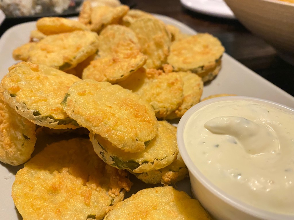 Thatcher has been glued to the laptop every evening taking Driver’s Ed classes so Finn and I snuck out for a quick dinner the other night…with the promise that we’d bring home take-out. Finn wanted all his favorites. So, nachos (Pile of Love…aptly named on the menu), Fried Pickles (Frickles), and of course the tuna avocado maki roll it was. We always love our nights out at Minglewood Harborside.