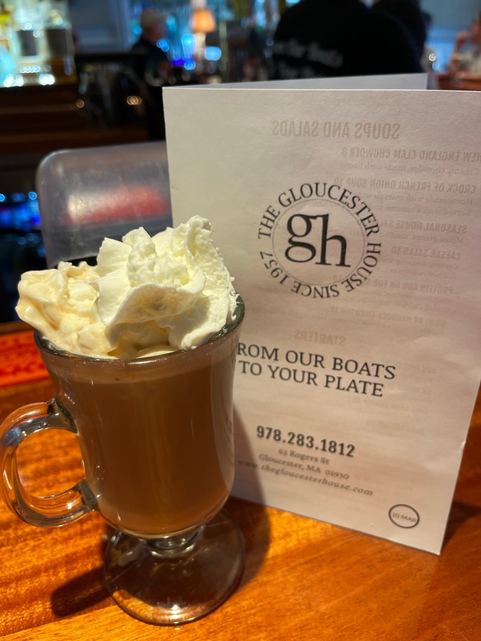 Introducing another in the limited series of posts featuring local Irish Coffee. This one was a bit of a surprise because we went to Gloucester House on short notice and I wasn’t planning to spend my afternoon there, but that’s the beauty of retirement in Gloucester! Here’s their version of a double Irish Coffee. I am not sure why they ever bother to ask if I want the whipped cream…..it was perfect for leisurely socializing ! Thanks Gloucester House!