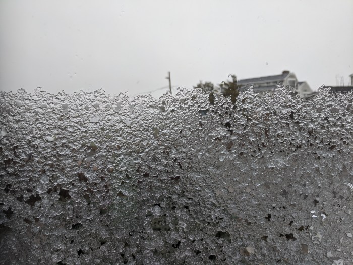 Also 2 pm. Sleet stacked then slid down. Thunk.