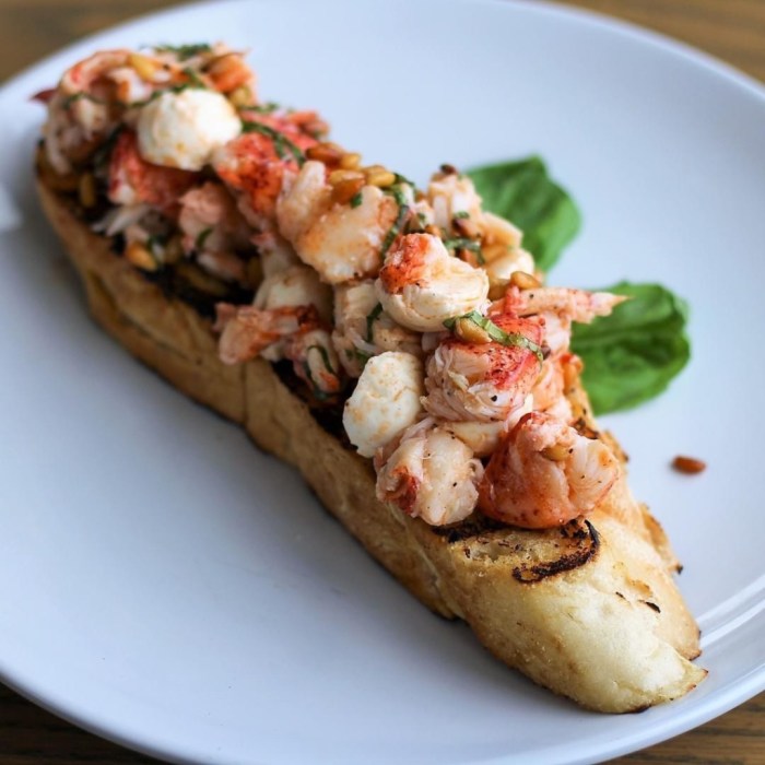 LOBSTER BRUSCHETTA – fresh lobster, buffalo mozzarella, extra virgin olive oil, fresh basil, pine nutsCapeAnnMarina.com