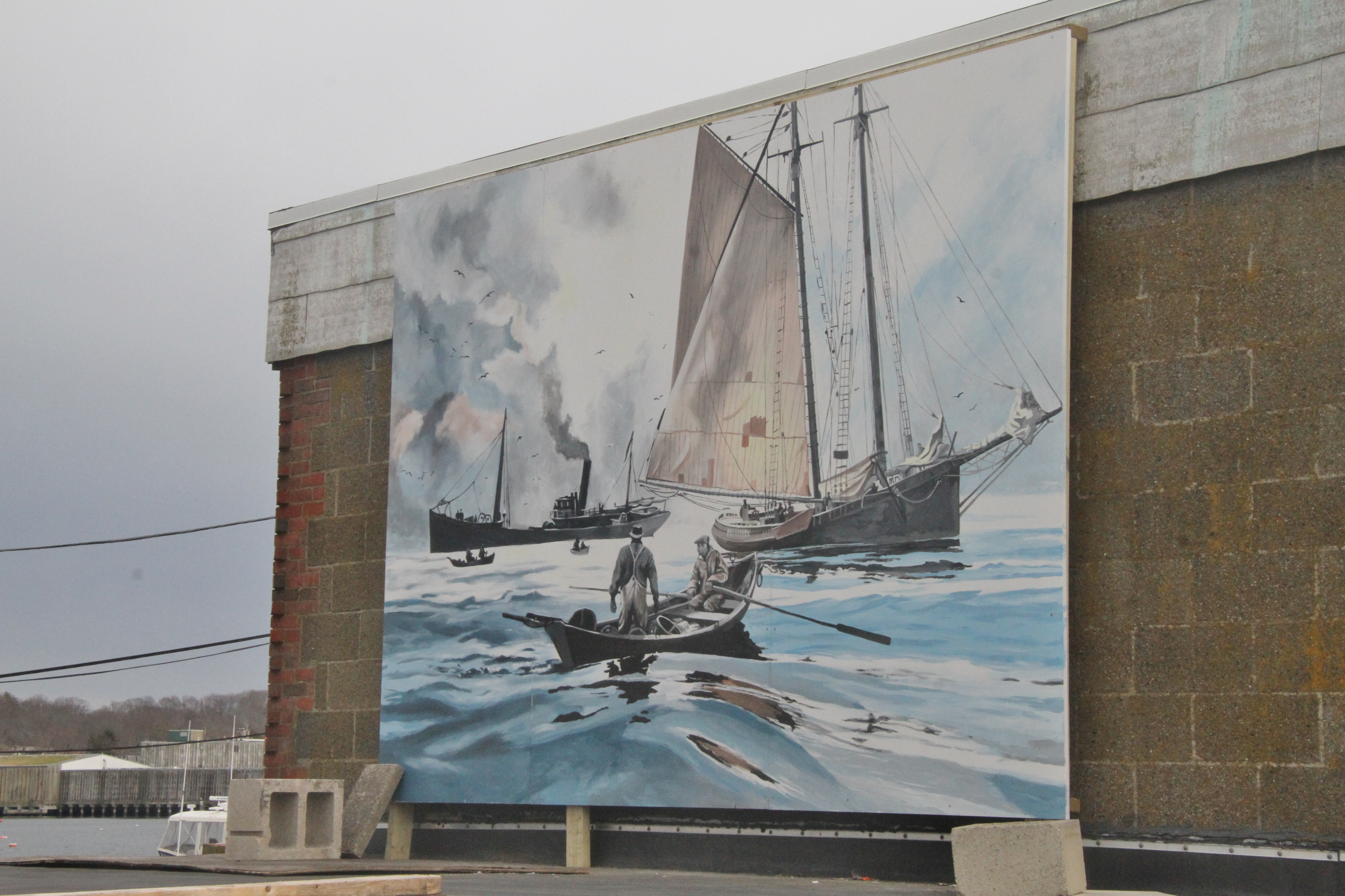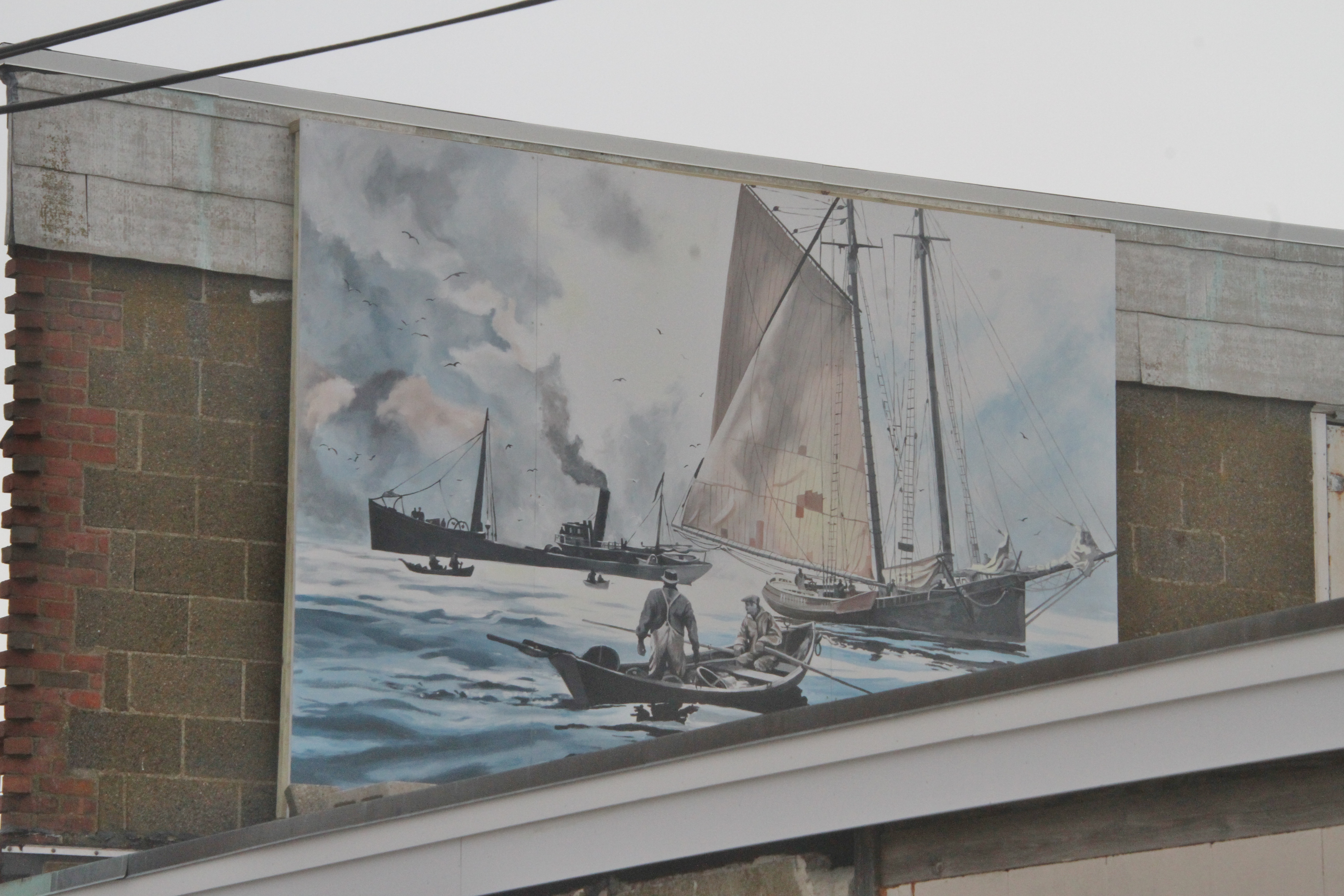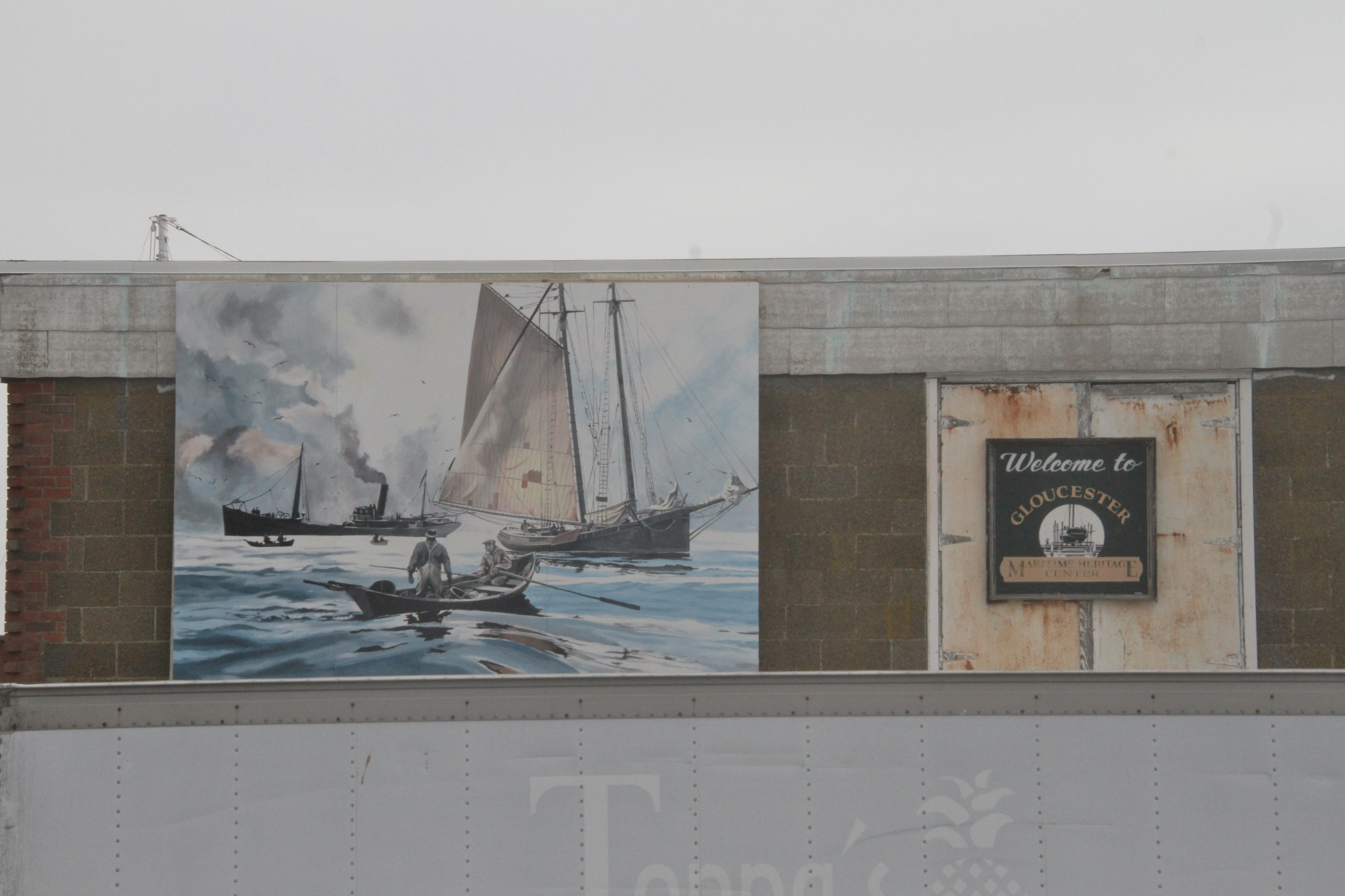 Thanks to Awesome Gloucester, there’s a wonderful new mural on the Harbor Loop. The Doryman’s Mural Project is public art project that was recently unveiled at Maritime Glouceser. The mural is by Studio Fresh with permission from The Doris O. Hoyne Revocable Trust. It’s intended to remind us of the critical role dorymen have played. This piece has been recreated by StudioFresh with permission from The Doris O. Hoyne Revocable Trust. Additional information can be found at Maritime Gloucester.