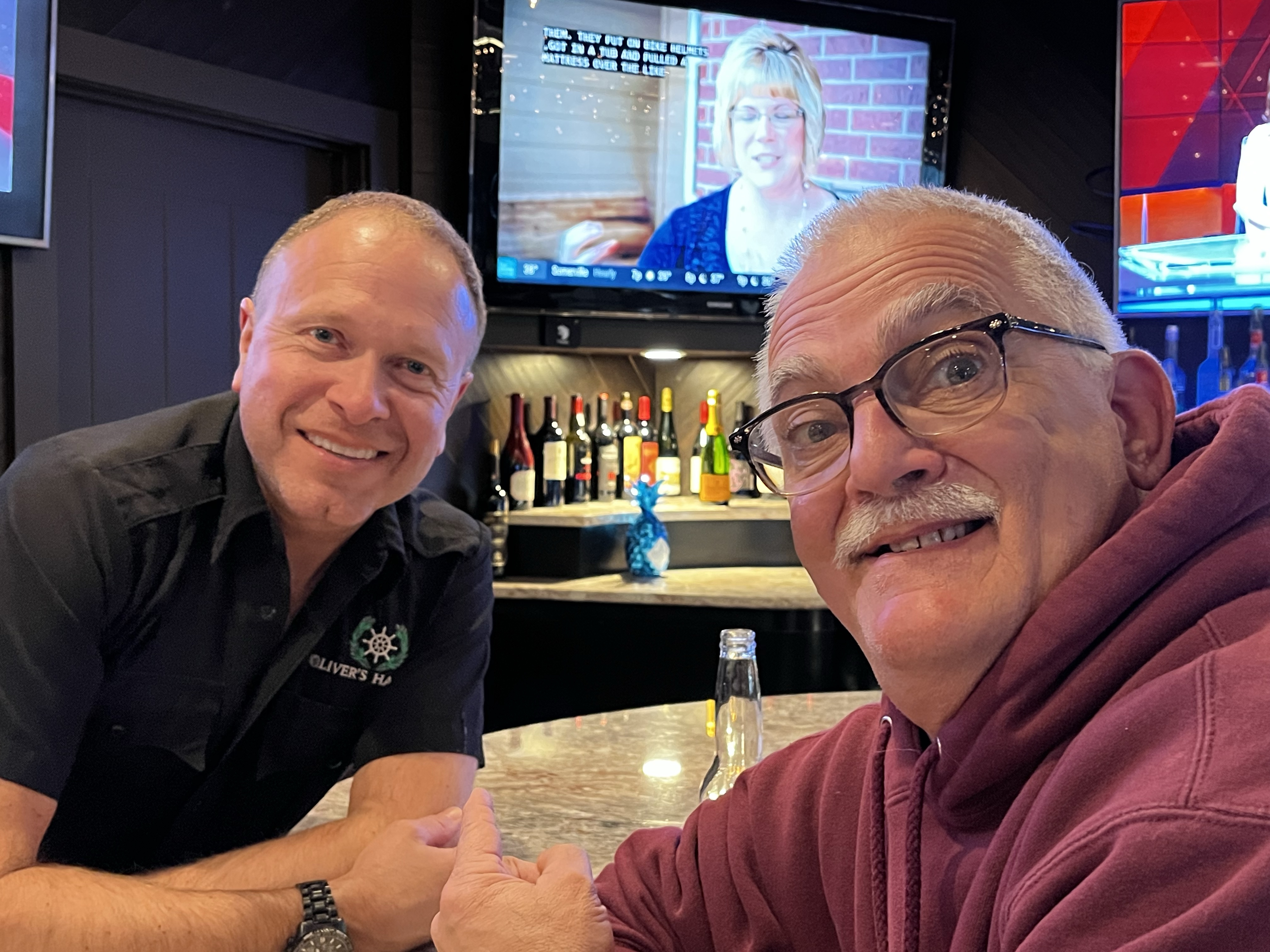 We stopped by Oliver’s Harbor on Main Street to check out their new menu and meet friends for a drink. Our friends wanted to try the pizza and we were mostly looking to visit in a comfortable setting. We were greeted by bartender Scott, who commented on Jim and Joey’s recent live post riding a CATA-On-Demand bus. Turns out bartender Scott was also their CATA driver Scott! Small world. Thanks Scott for treating us well at the bar as well as being an outstanding driver. Here’s the link to the post in case you missed it.