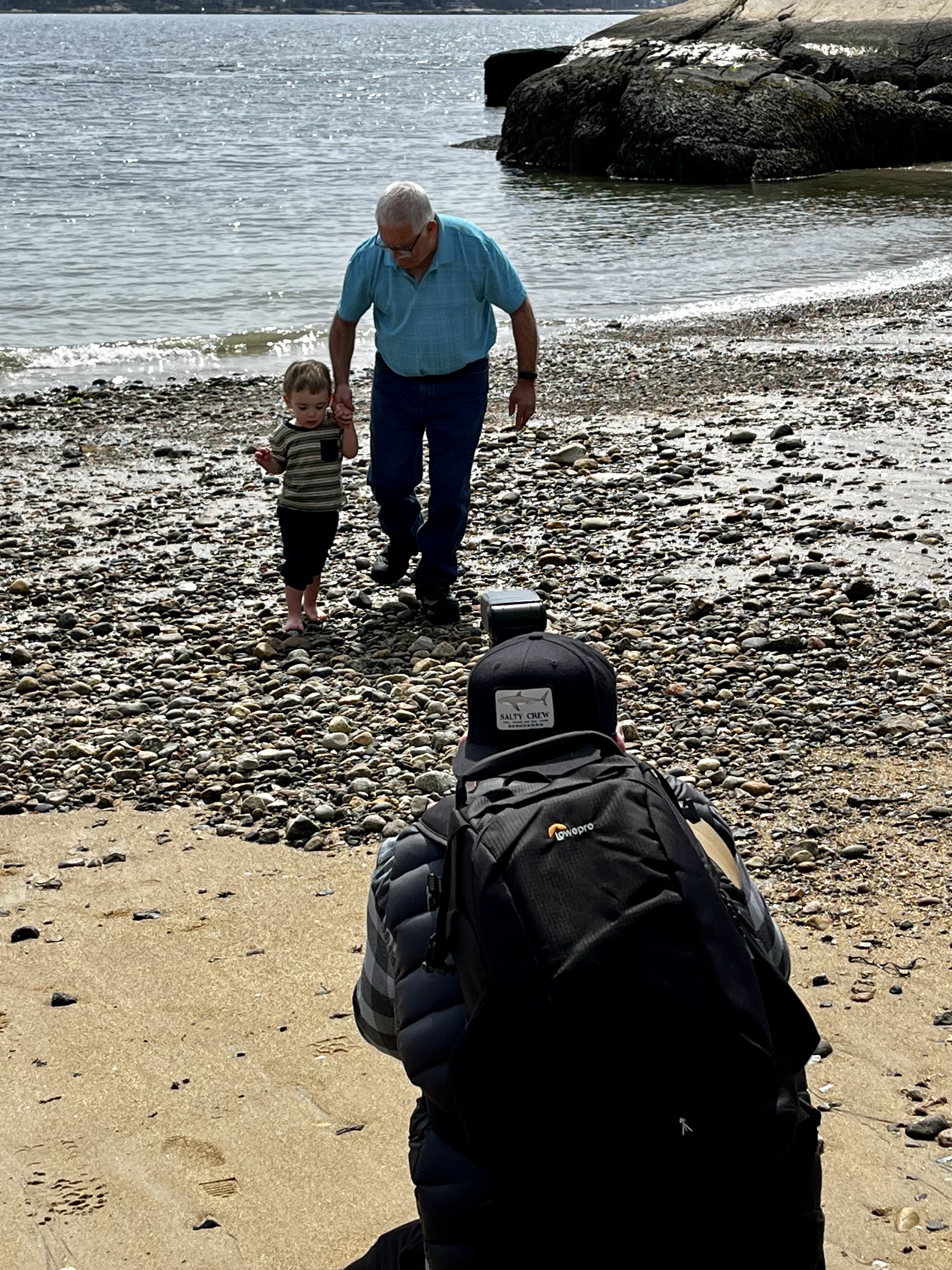 We started at the tennis courts and worked our way up to Half Moon Beach. The toddler got dirtier and wetter with nearly every step but Jay kept right up and even allowed him to touch his camera in order to build trust. You gotta love a photographer that gets right in the water in order to get the right shots. Even though the toddler was a bit cranky, Jay was patient and inventive in his techniques. We got access to the shots just a few days later and are thrilled with the results. If you ever have the need, he’s located on Main St in Gloucester though I did all our communicating online easy peasy. Thanks Jay!