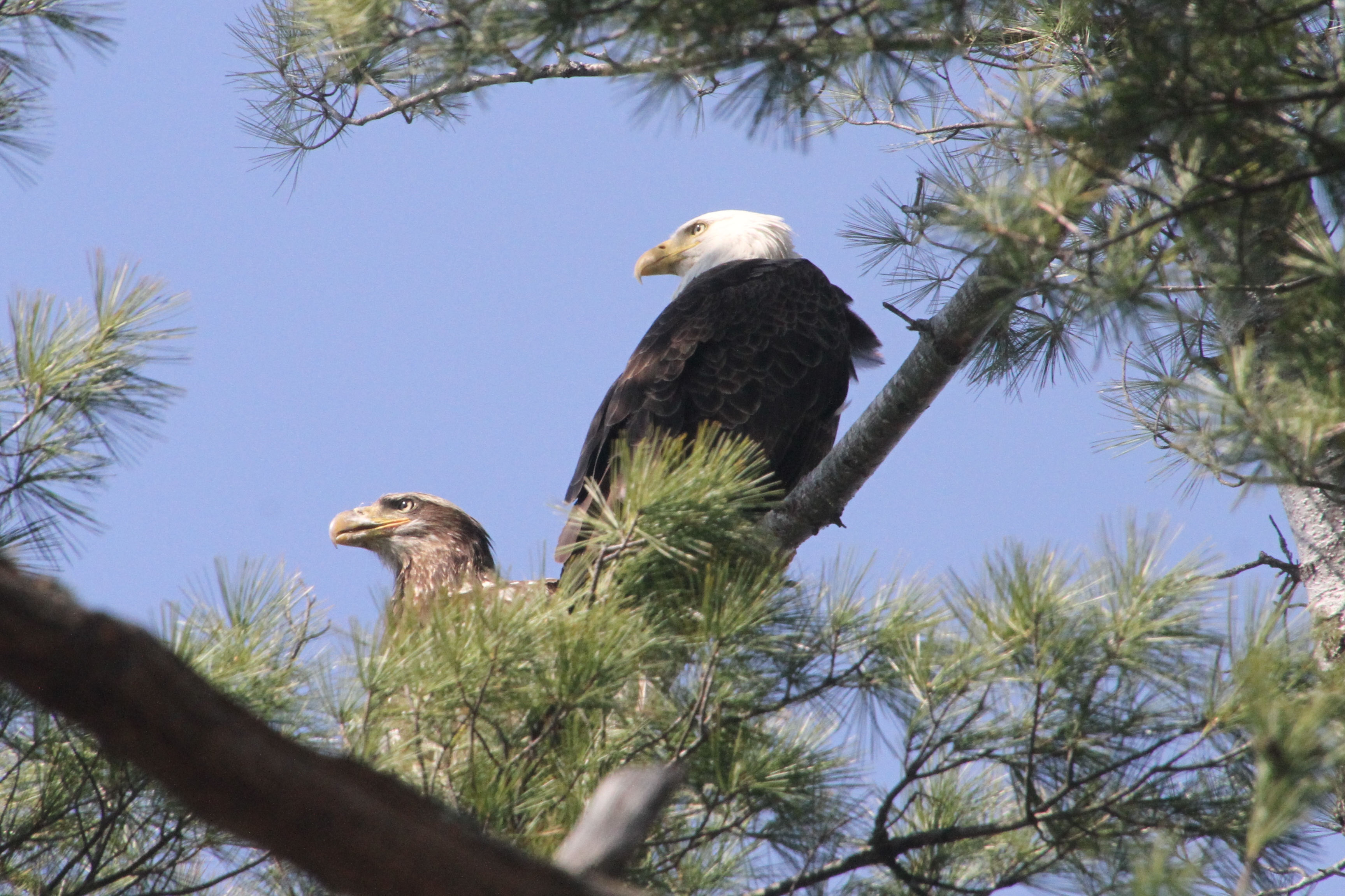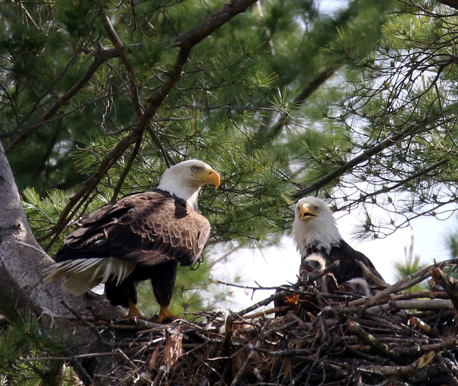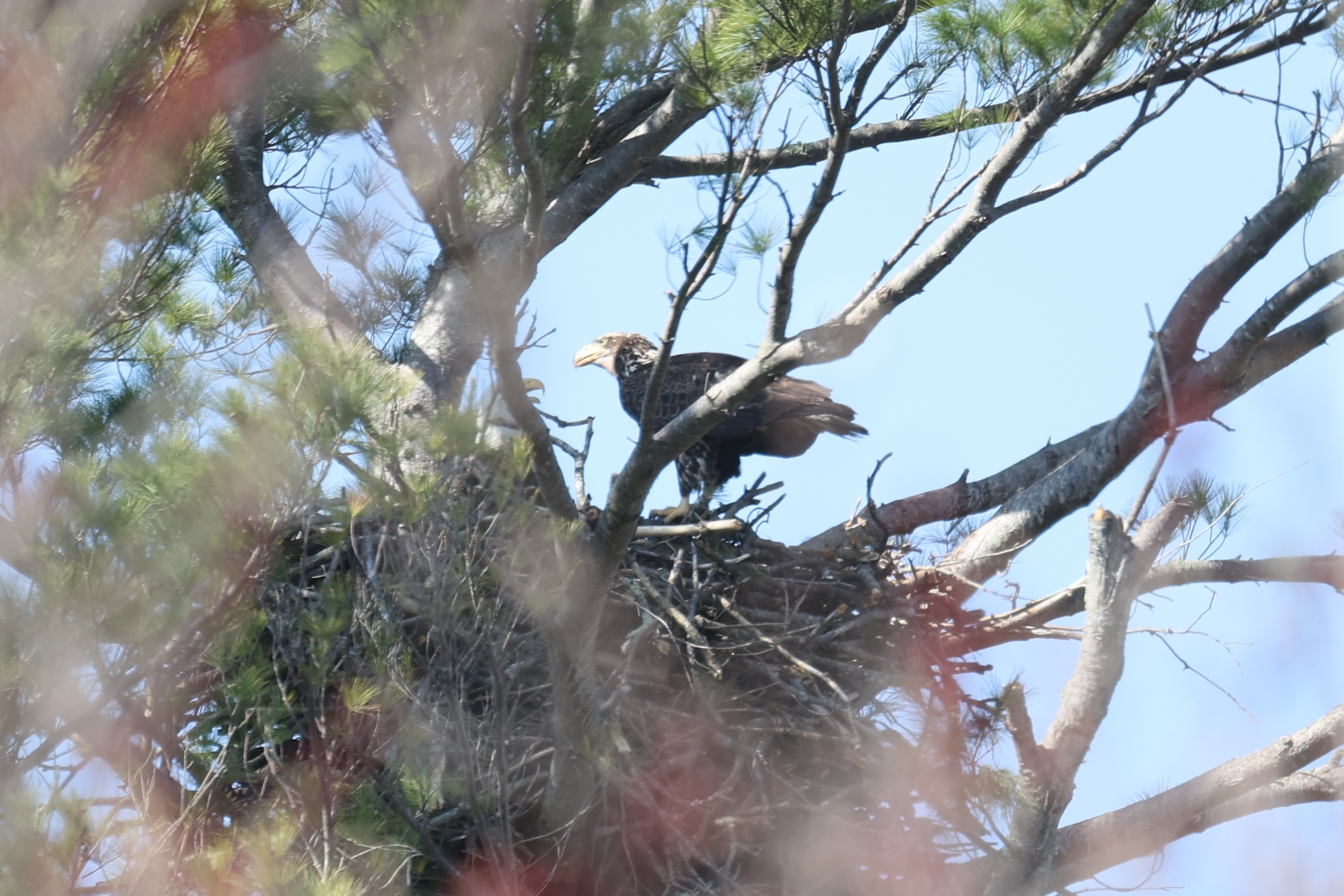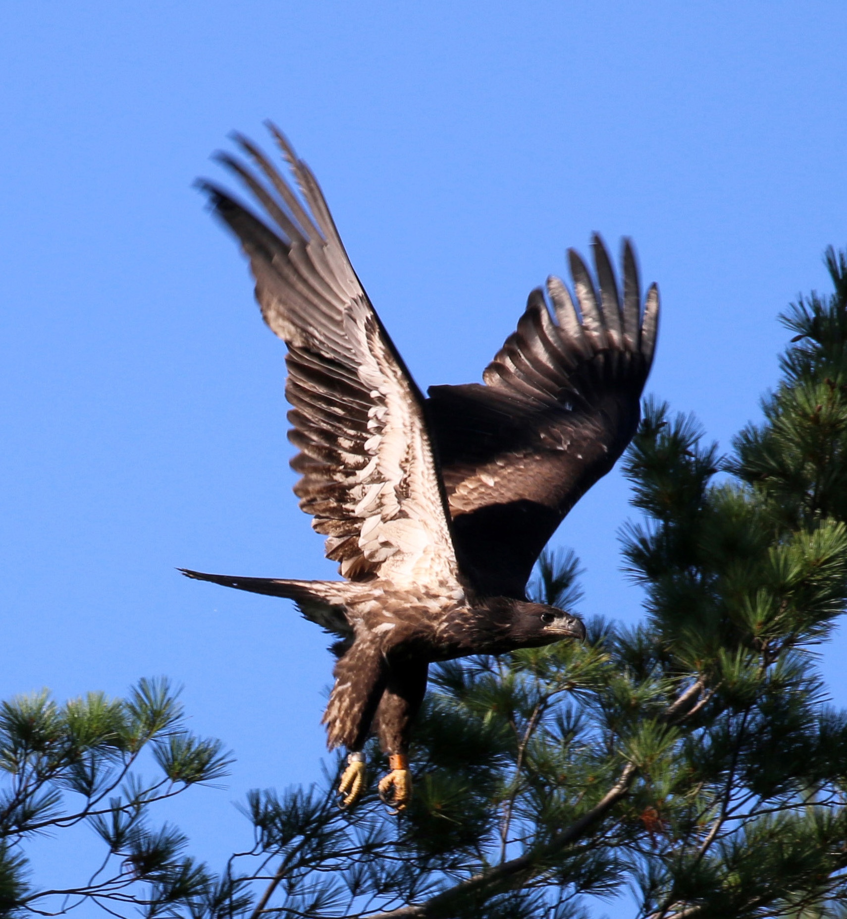 You see here also photos of MM as an eaglet in Amesbury with its parents as well as a photo of newly banded MM flying off presumably from the Amesbury area. These photos are provided by Darlene–thanks a bunch! I think MM is one of the pair of adults we were watching last year in the Gloucester area. We believe one of the adults likely died and MM has now paired up with this younger eagle. I believe it’s a little unusual for this to happen, but not unheard of. We spotted this pair flying into a local nest yesterday and (from a long distance) they seemed to be eating and communicating. It’s been reported that there’s a third eagle in the area also but I haven’t found the 3 together yet. Stay tuned. I hope you will agree it’s an exciting story. Further details and additional photos can be found at Pat D’s Photos and Adventures on Facebook.