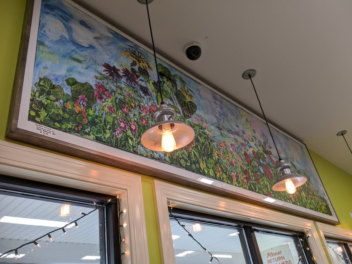Bobbi Gibb, 2019, sweeping lush untitled landscape (photo: installation view at Common Crow, Gloucester, MA., Dec. 2022)