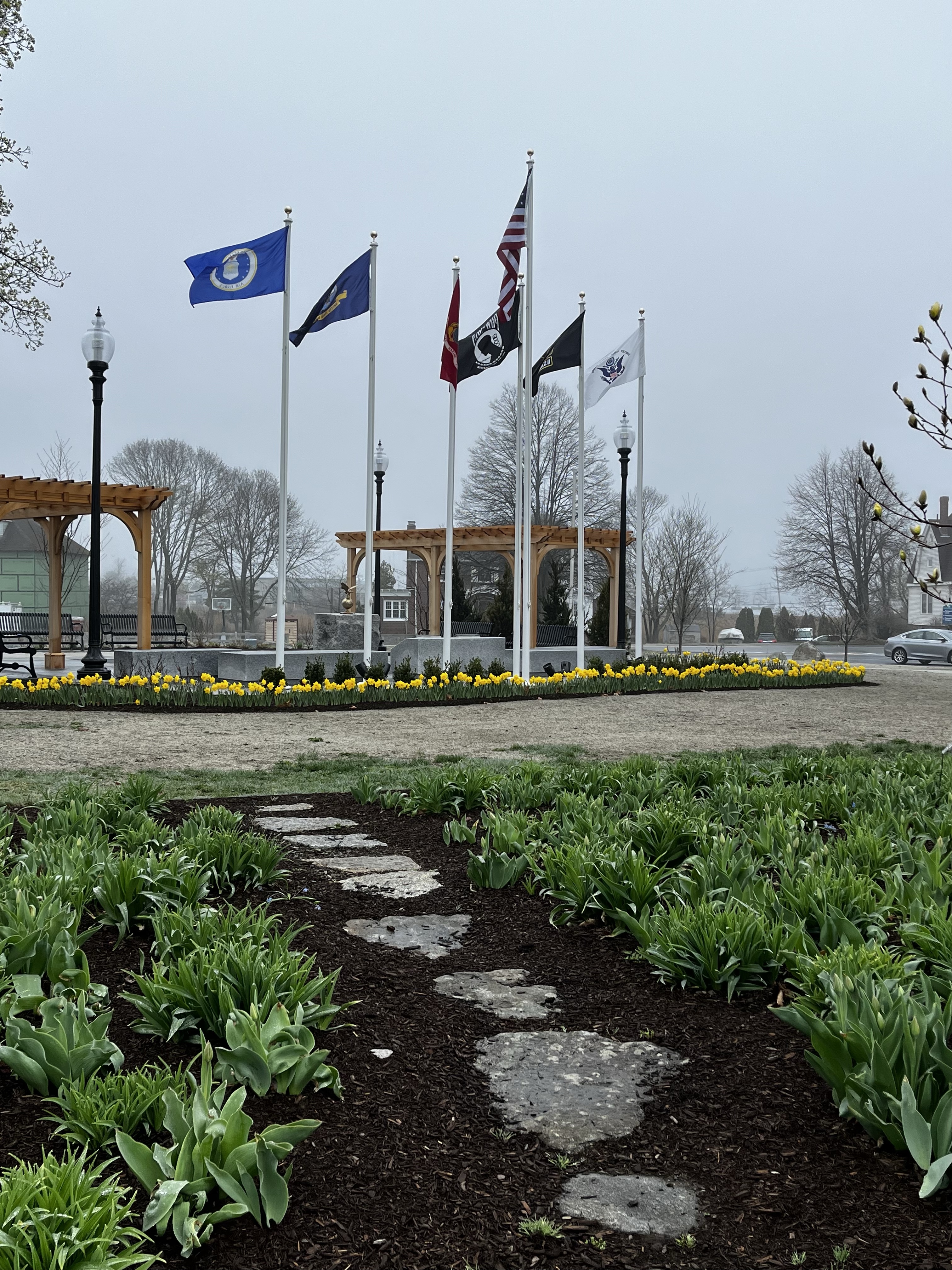 My hands-down favorite season in Gloucester is spring because of the tulips along the boulevard. Though it’s a little early in the short blooming season for tulips, it was exceptionally striking along the boulevard yesterday morning in the fog. Big fat heavy dew drops enhanced the beauty. For additional pictures and story details, please check out Pat D’s Photos and Adventures on Facebook. There’s a good chance you will see some of these photos on future products from Pat D’s Photos. Comment with your favorites to help me decide (including those on the Facebook page!)