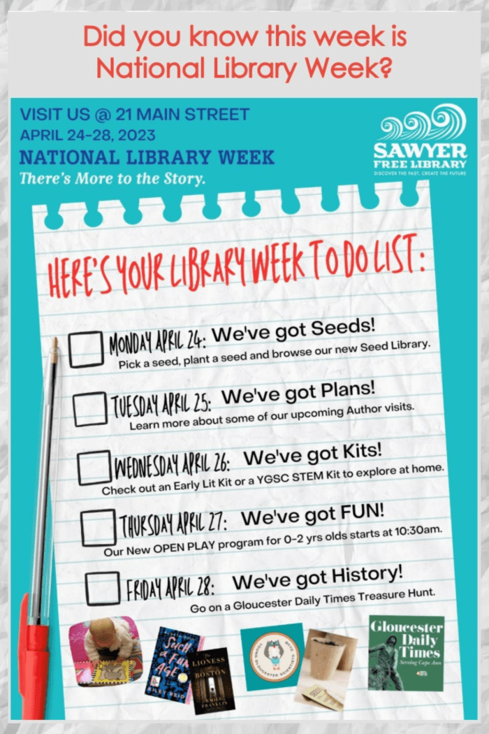 National Library Week Fun at Sawyer Free Library starting Monday, April 24 – Friday, April 28!