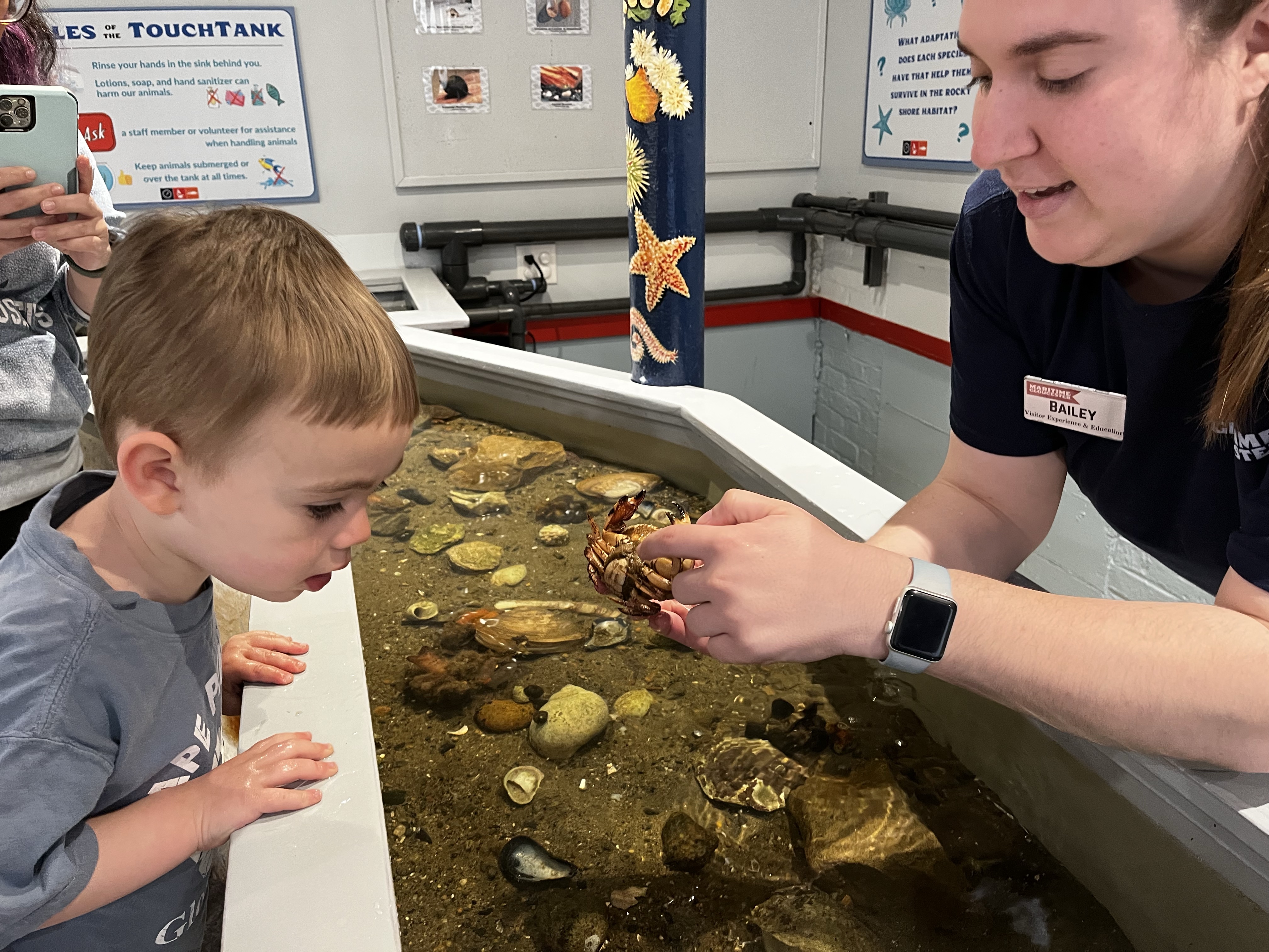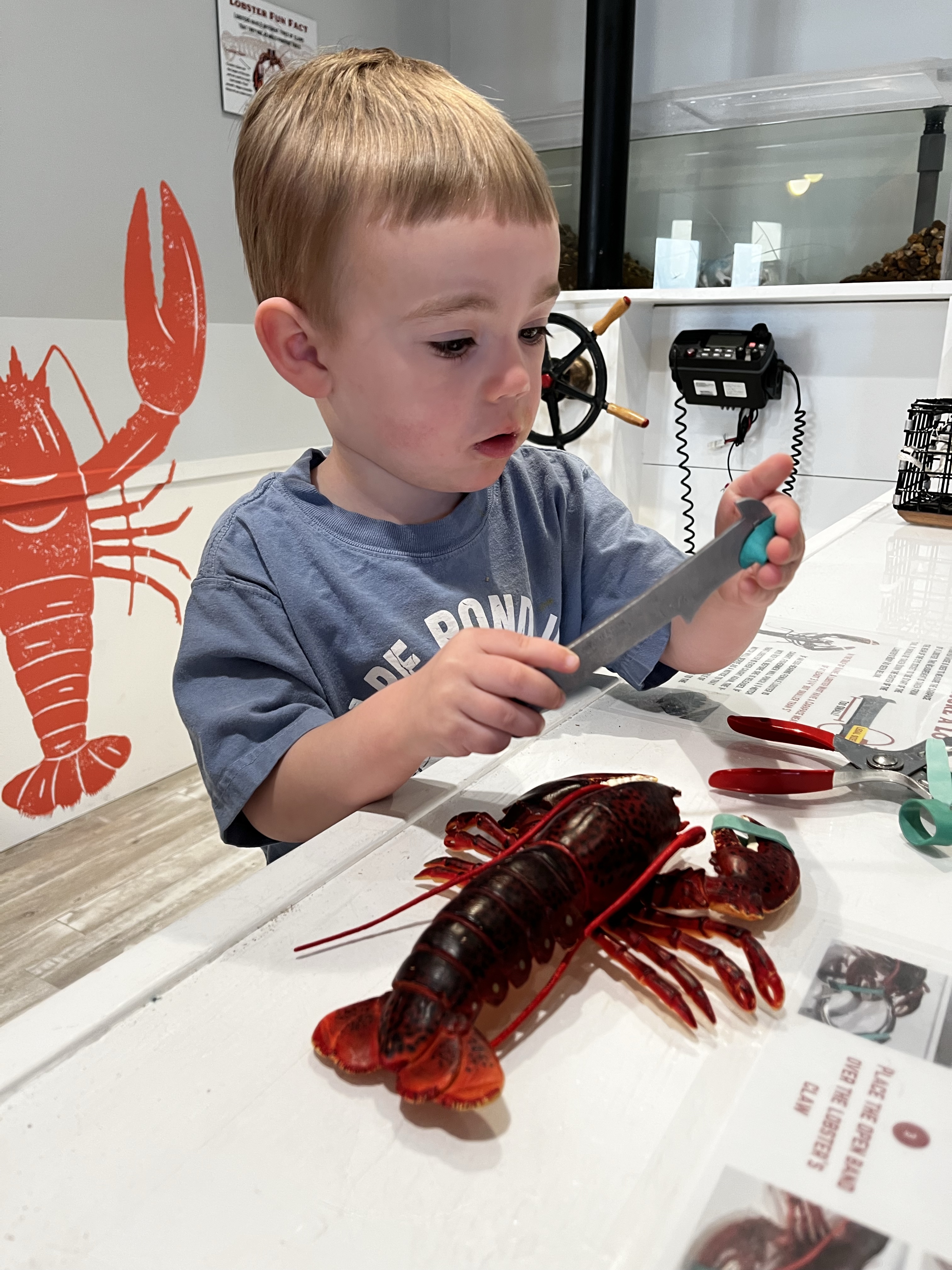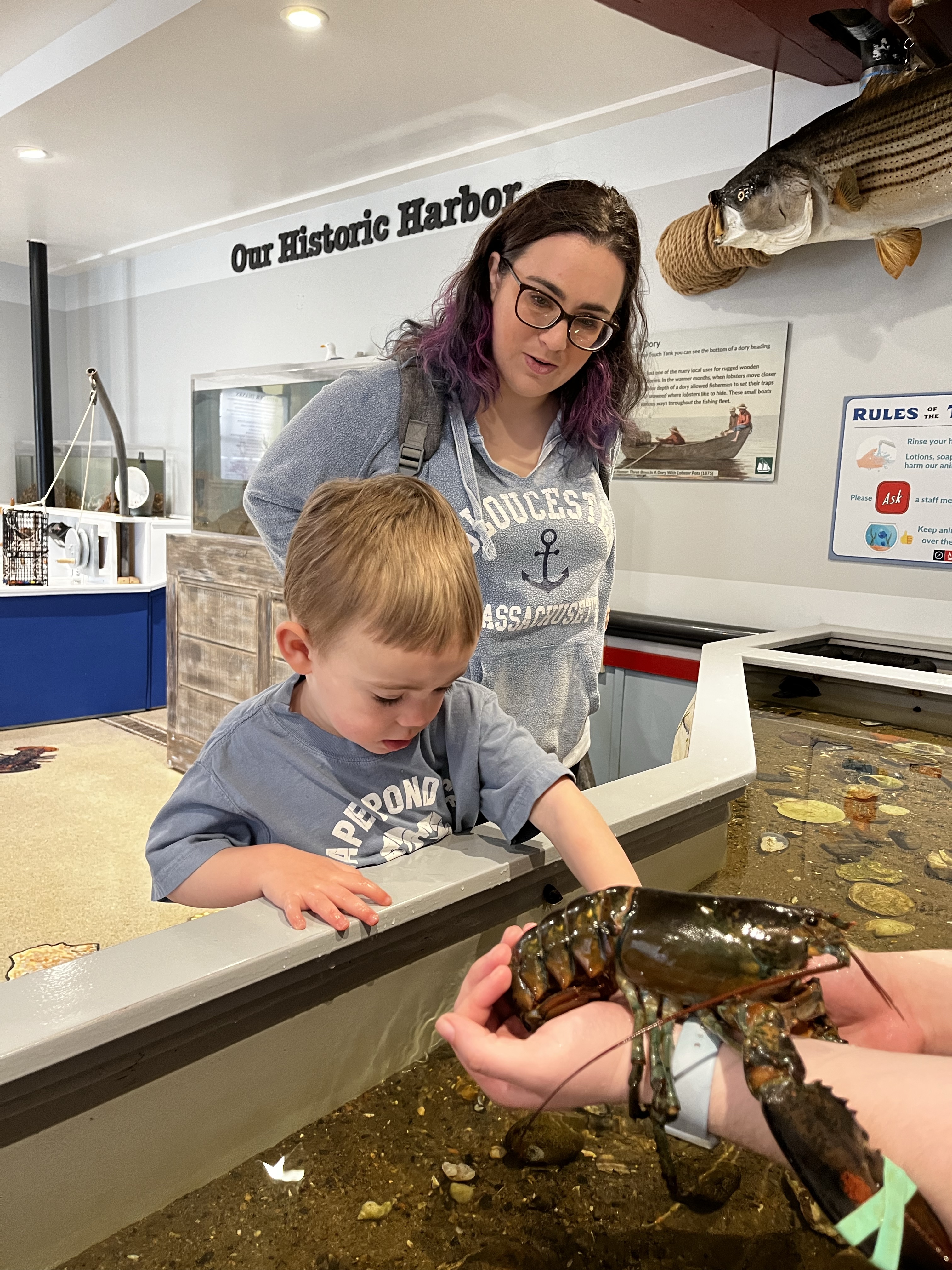 The brand new Maritime Gloucester Science Education Center on Harbor Loop was among the activities we chose while our grandson was visiting and he LOVED it! The hands-on enrichment activities were a favorite for this two year old. Bailey, the guide that day, was patient and engaging especially at the touch tank. In a good indicator of his heritage, Schooner was fearless with the lobster and super interested in the lobstering sample equipment. Put it on your list for visitors or your own family! There’s still time this vacation week.