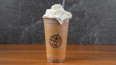 Check out this peanut butter chocolate milkshake with order cookie crumbs on the bottom!