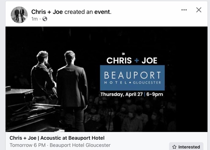 Yes we are interested! Our friend Chris Langathianos scheduled to perform tomorrow April 27 2023 at the Beauport Hotel on Commercial Street 6-9 PM. See you there!