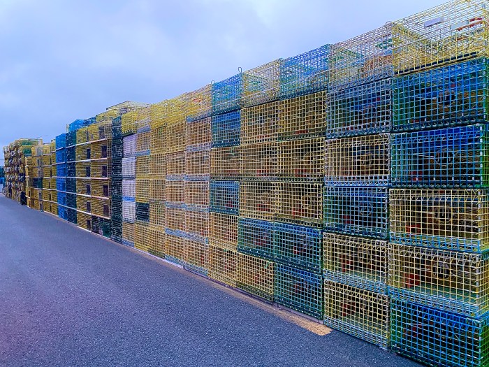 Traps for days. Blue, yellow, green, and even red (which I’ve never seen before)….square, rectangle, old, and new. Truest signs of a working waterfront.