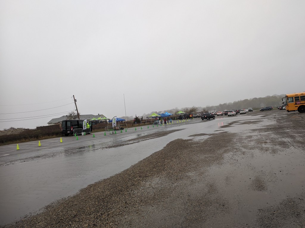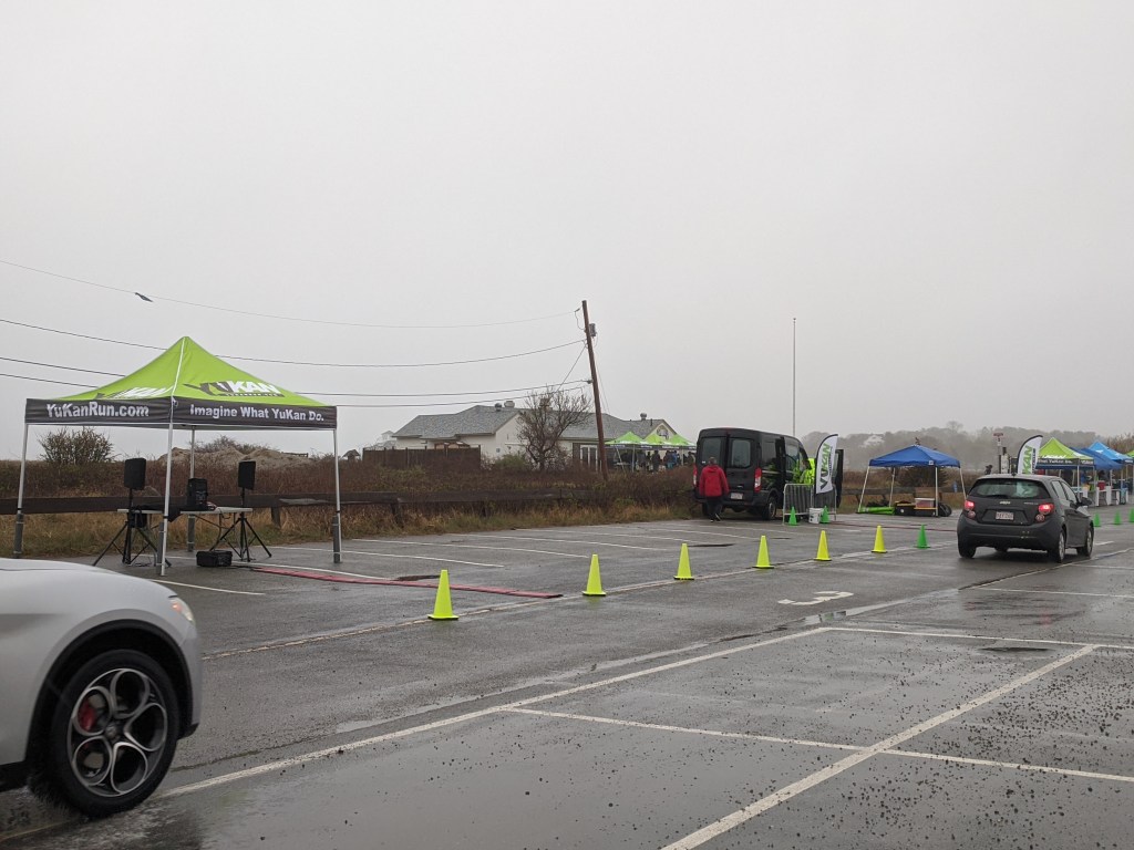 Mostly light rain this morning so far with stretches of heavy. Good luck to the racers on this woolly weather day!