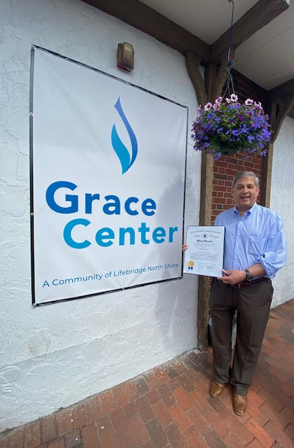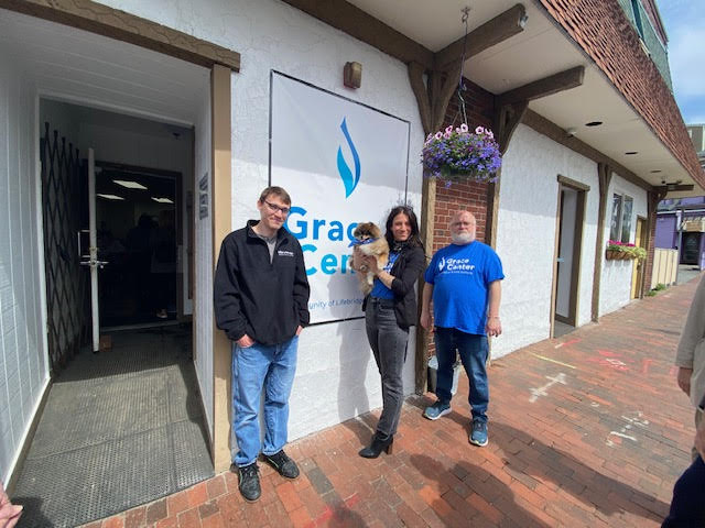 Senator Bruce Tarr, Mayor Greg Verga and friends outside Grace Center’s new home.