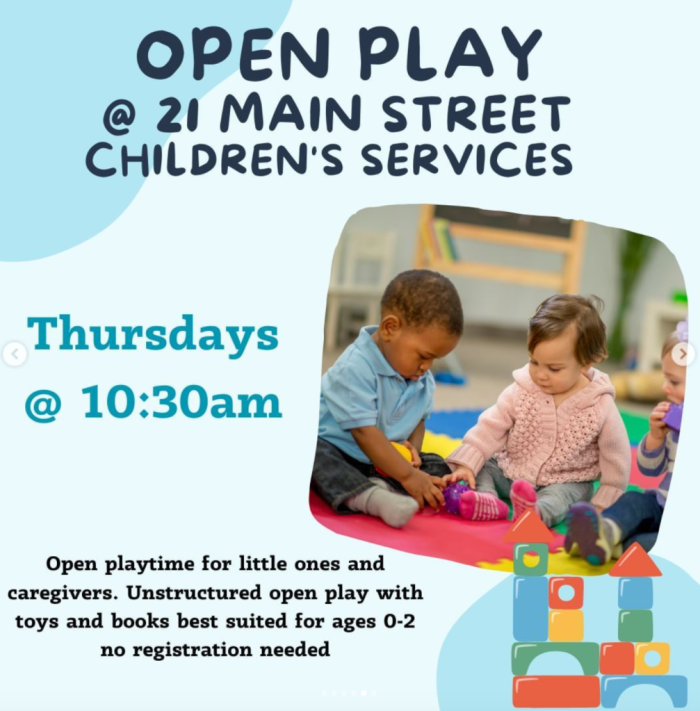 A morning of unstructured play for little ones and their caregivers at SFL at 21 Main Street. Books and toys will be provided. Best suited for ages 0-2.