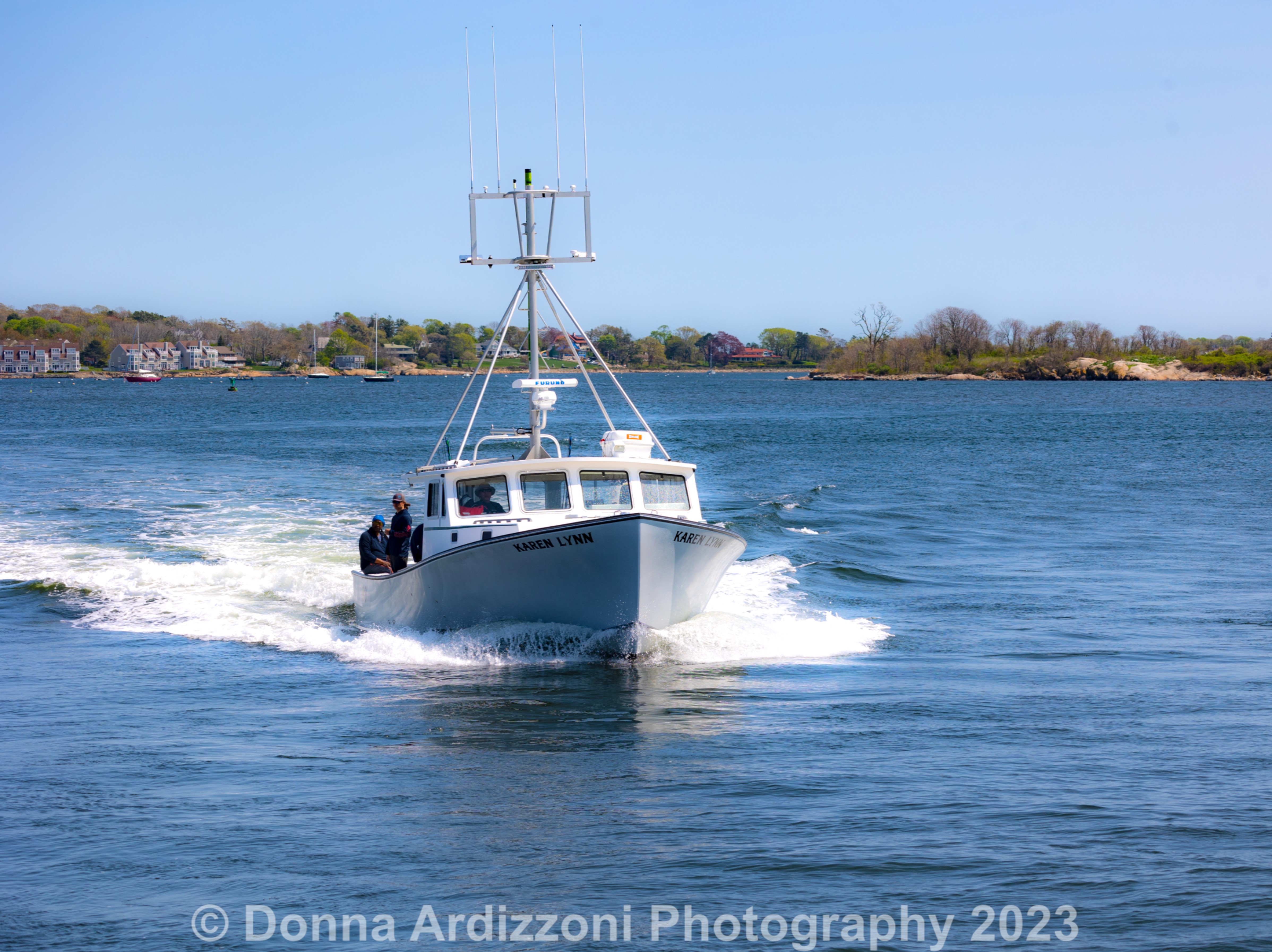 I look forward every year to taking several whale watch trips with Cape Ann Whale Watch but spring is my favorite time to take the ride. Easy parking at 415 Main Street, friendly staff and informative crew are among the reasons I enjoy these “wildlife safaris”. As a retired teacher, I appreciate the emphasis on education and research. So off I went this week on a gorgeous day. Though we did not have as many picture taking opportunities with the whales, we did get to see humpbacks, minke and fin whales. The highlight of the trip was probably the Atlantic white sided dolphins associated with 2 humpbacks apparently feeding from the plentiful grounds side by side. If you look carefully at the photos here, you can see them together. Those dolphins are so quick, they are difficult to capture. We also were entertained by the distinct chirping of the Artic Terns, Northern Gannets diving headfirst, and a little songbird attempting to find respite on one of the passenger’s hats. My lucky bright red “Whale Watching Wellies” brought a different kind of luck this time! Well worth the ride! Thank you naturalist Tina, Capt John and Jim Douglass for another fantastic experience.