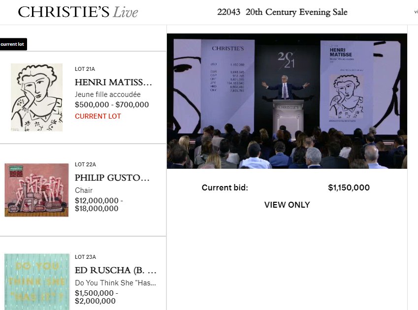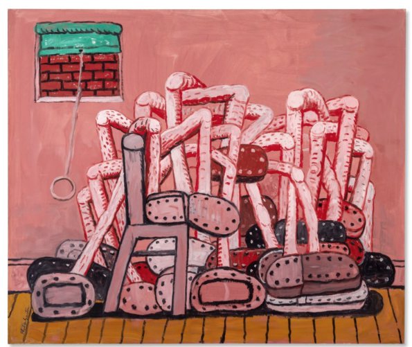 O’Keefe’s Black Iris 5–also from the Paul Allen collection–surged past its presale estimate (5-7 million to 18 million); and there was spirited bidding for more than one Hockney. So far the audience broke into applause for two: a Toulouse Lautrec circus elephant drawing and “one of the masterpieces of the week”, a large Rosseau, reached an auction record. “I don’t think you’ll see another,” quipped the auctioneer holding the gavel at 37.5 million. Paul Guston Pull, Picasso Femme Assise, and a Cezanne figure group passed.