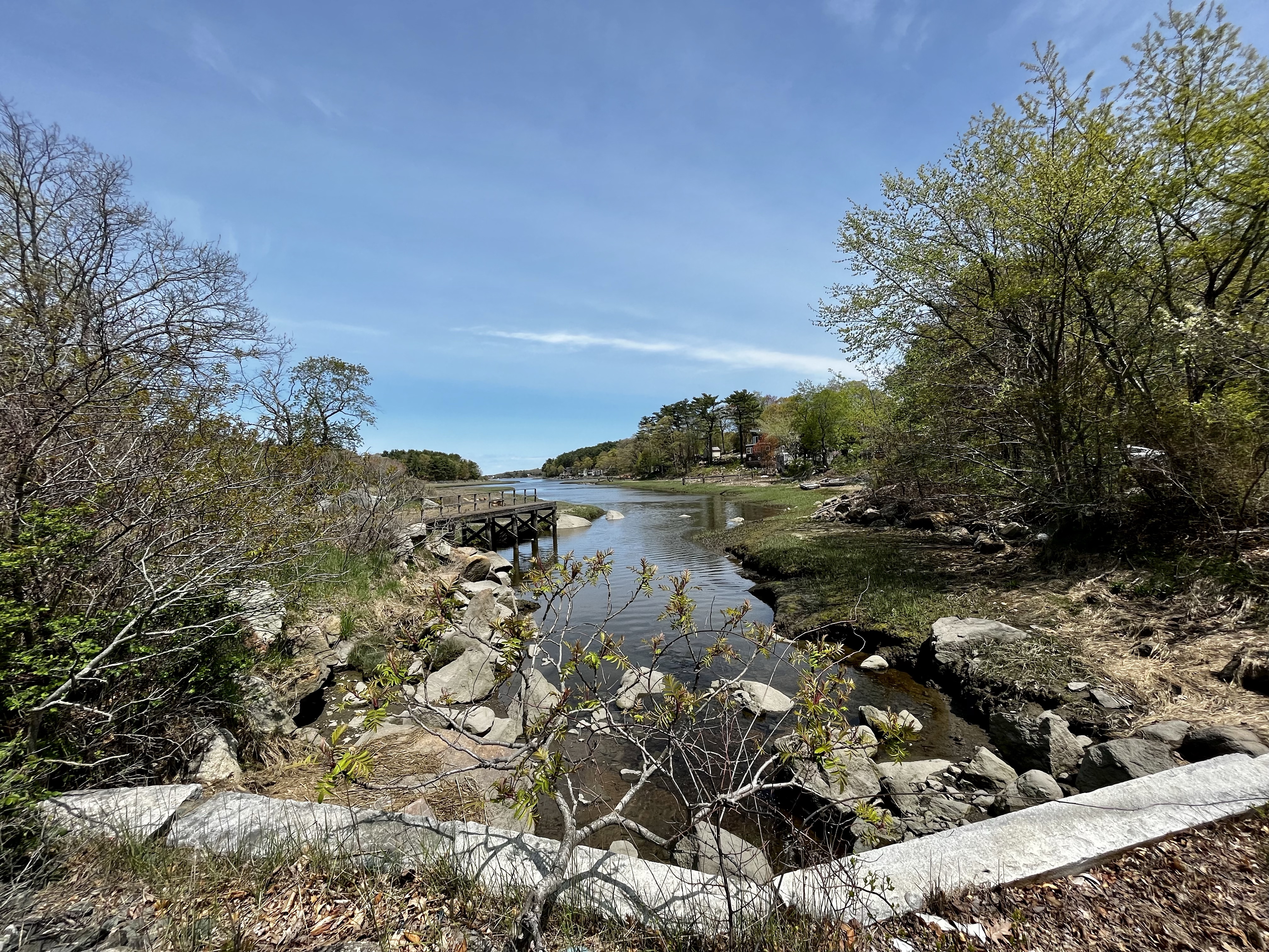 13. LITTLE RIVER LANDING (aka Stubby Knowles and Frenchmen’s Pier), Essex Avenue at Magnolia Avenue. Assessor’s Map 220/Lot 50. STATUS: Public. Laid out by the County Commissioners in 1973. Recorded at the Registry of Deeds, Book 5999, Page 672. Also found in County Engineers Plan 3123. CONDITION: Large area with great potential. Good location, plenty of room for parking, and several possible locations for a simple launch area. The Department of Public Works repaired the smelt fish pier and the parking area. Presently no launch area except a rough dirt path for carry-downs. Plaque, but not in a noticeable location. Very overgrown and neglected. Picnic bench. New plaque on a rock.