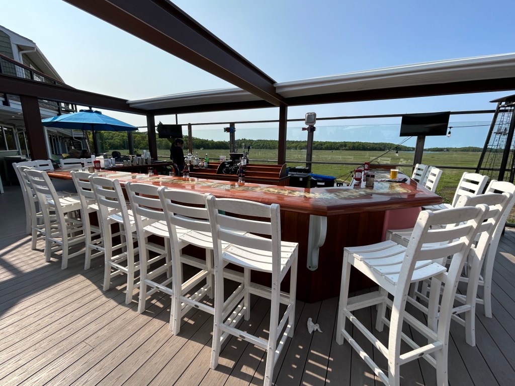 The other day I did a post about the deck and outdoor bar at Lobsta’ Land. Only one photo shows up on the GMG facebook posts and I wanted everyone to see how cool the bar with its retractable roof really is….but, a different photo showed up in the post. So, here it is again for those of you who might not click through to the website.