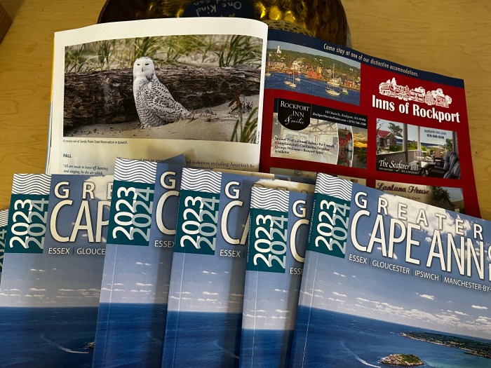 The Greater Cape Ann Chamber has recently distributed its 2023-24 Guide and Directory, which (as usual) is full of helpful information for visitors as well as residents. I always pick one up to have on hand for ideas for day trips or restaurants. And this year, I am pleased to report that one of my favorite photos is included! There are many fine images in the Guide from familiar names, so grab one and take a look. They are available at the Visitor Center at Stage Fort Park and my shift is Thursday mornings, just FYI! Here’s an online link to this year’s guide.