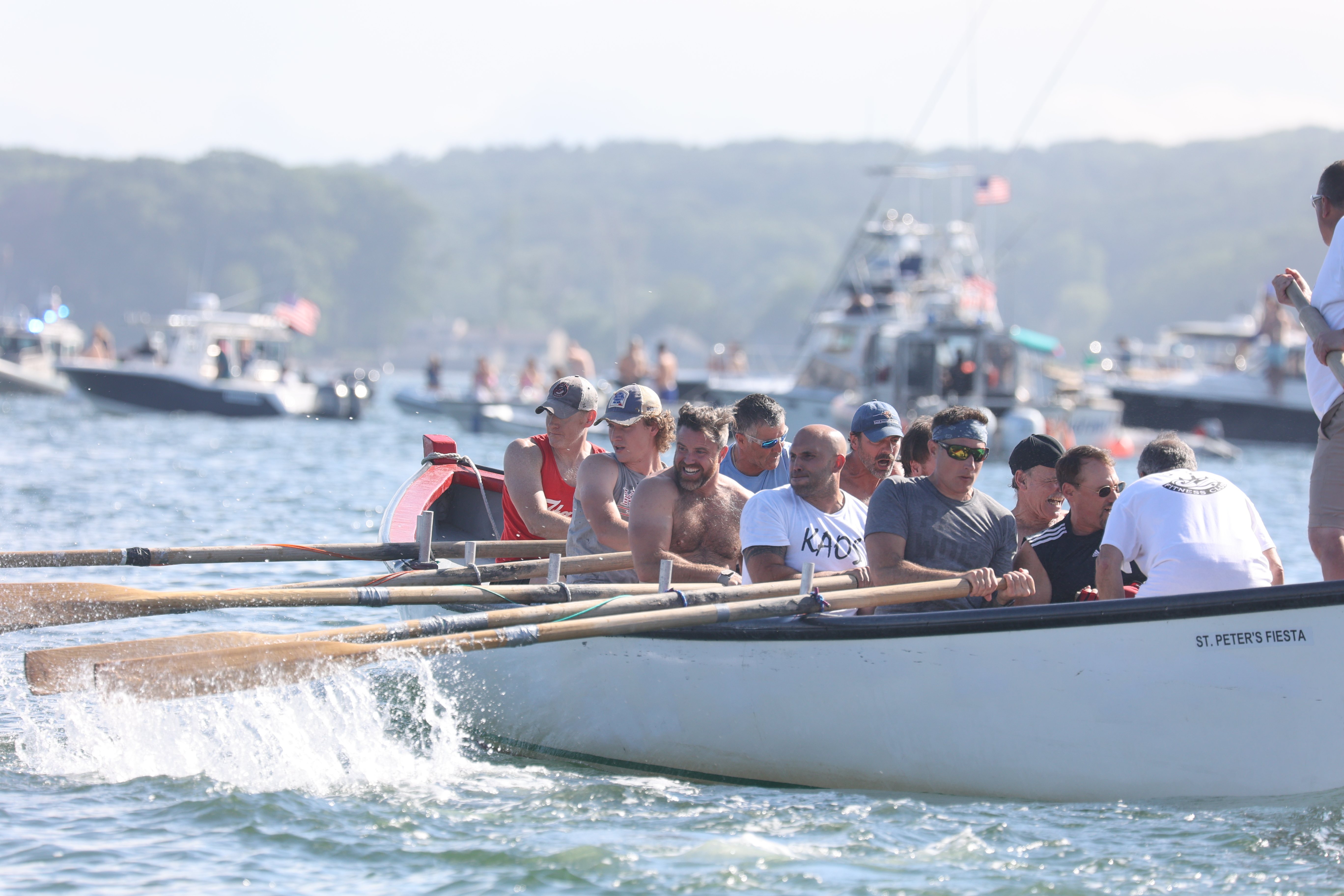 Three seine boat teams survived elimination races to participate in Saturday’s semifinals: KAOS, The Merger and Power Yoga. The skies cleared and the race was off! KAOS and The Merger survived the close race and will participate tonight against last year’s winner ZFG. Good luck to all.