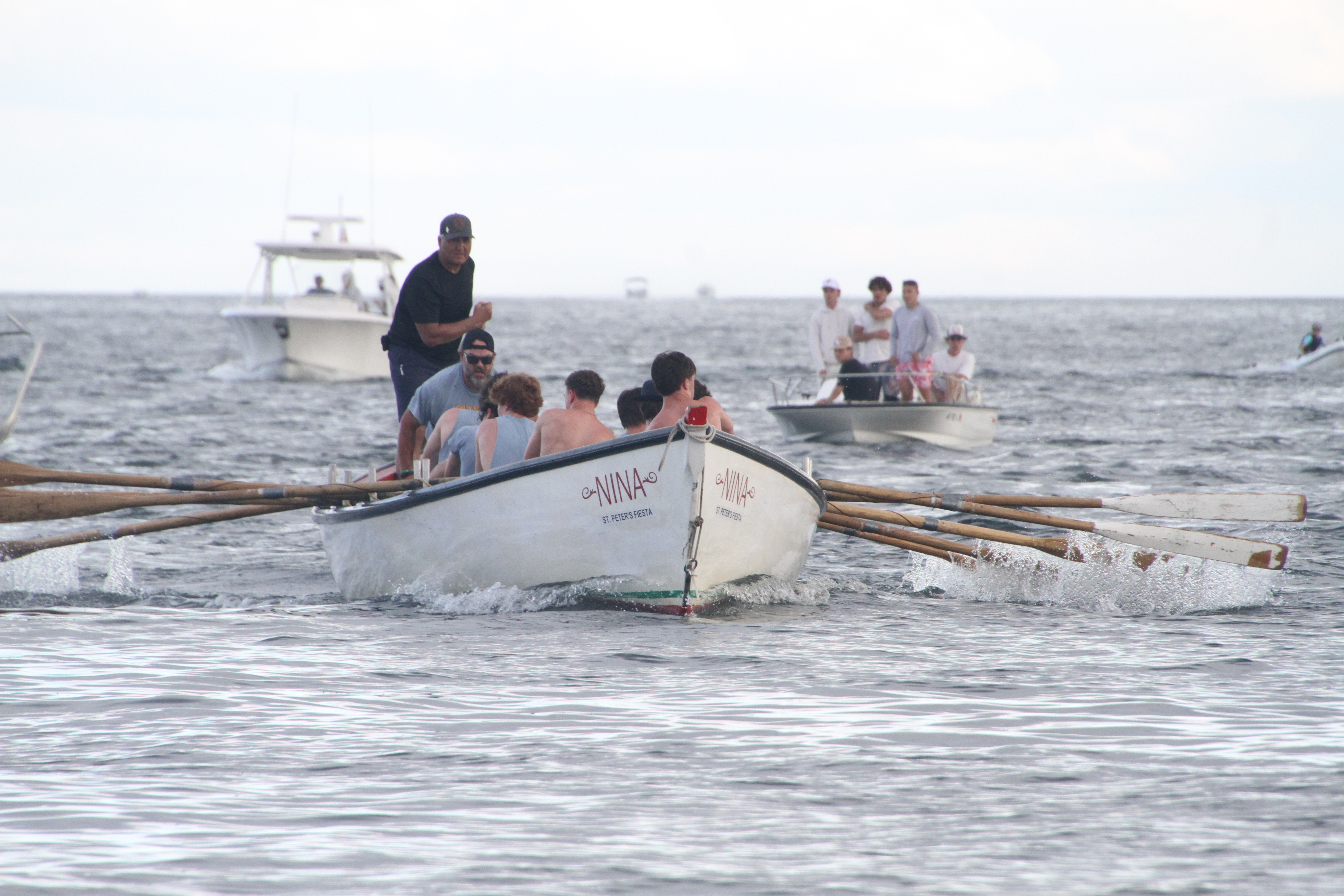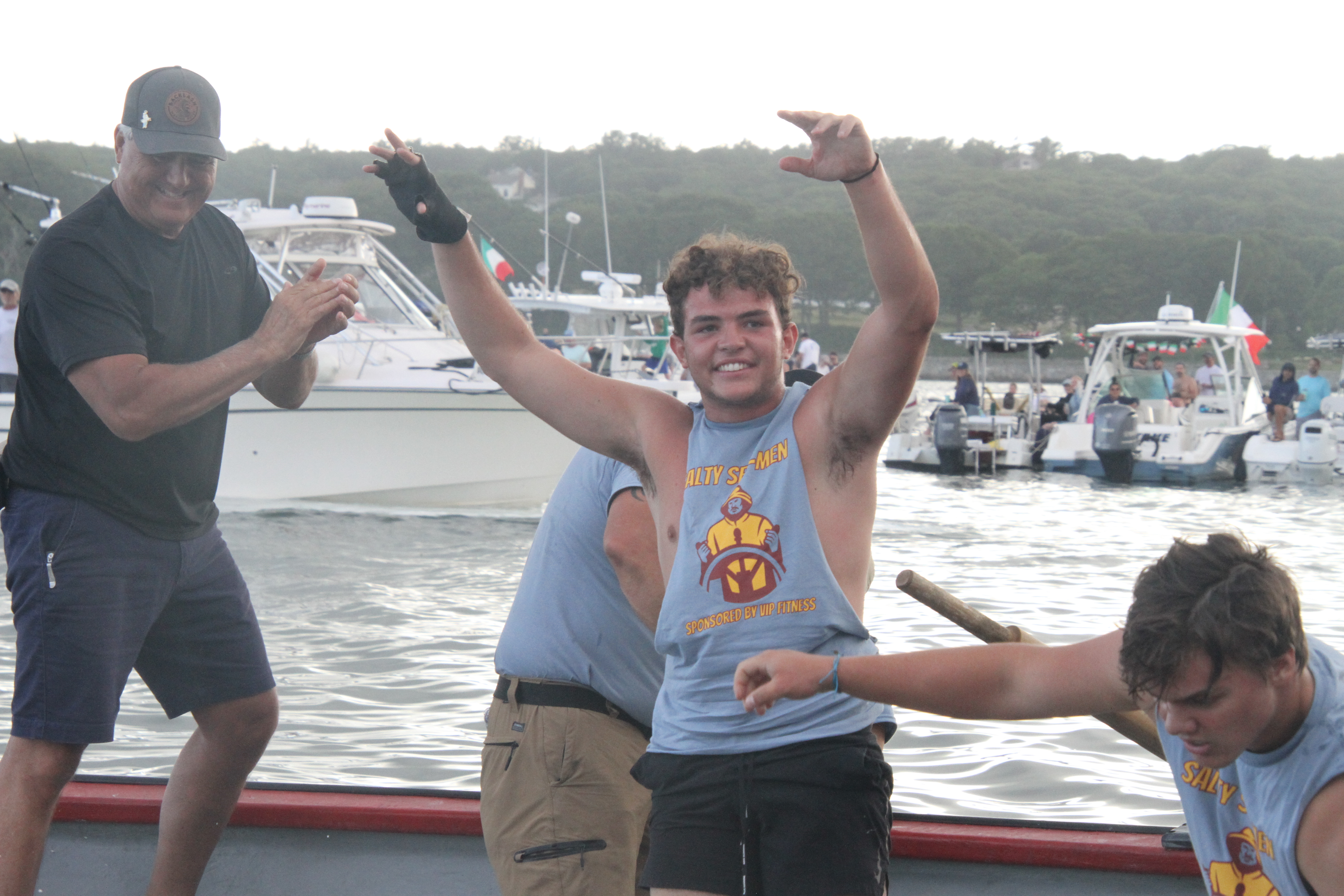 The Junior Mens teams that survived the elimination races competed Saturday in the semifinals to determine which two will compete with last year’s winner Family Strokes in Sunday’s finals. It was a race in every sense of the word to the final strokes and Salty Seamen and Apostles will fill out the card tonight at Pavilion Beach. Great teamwork shown by all!