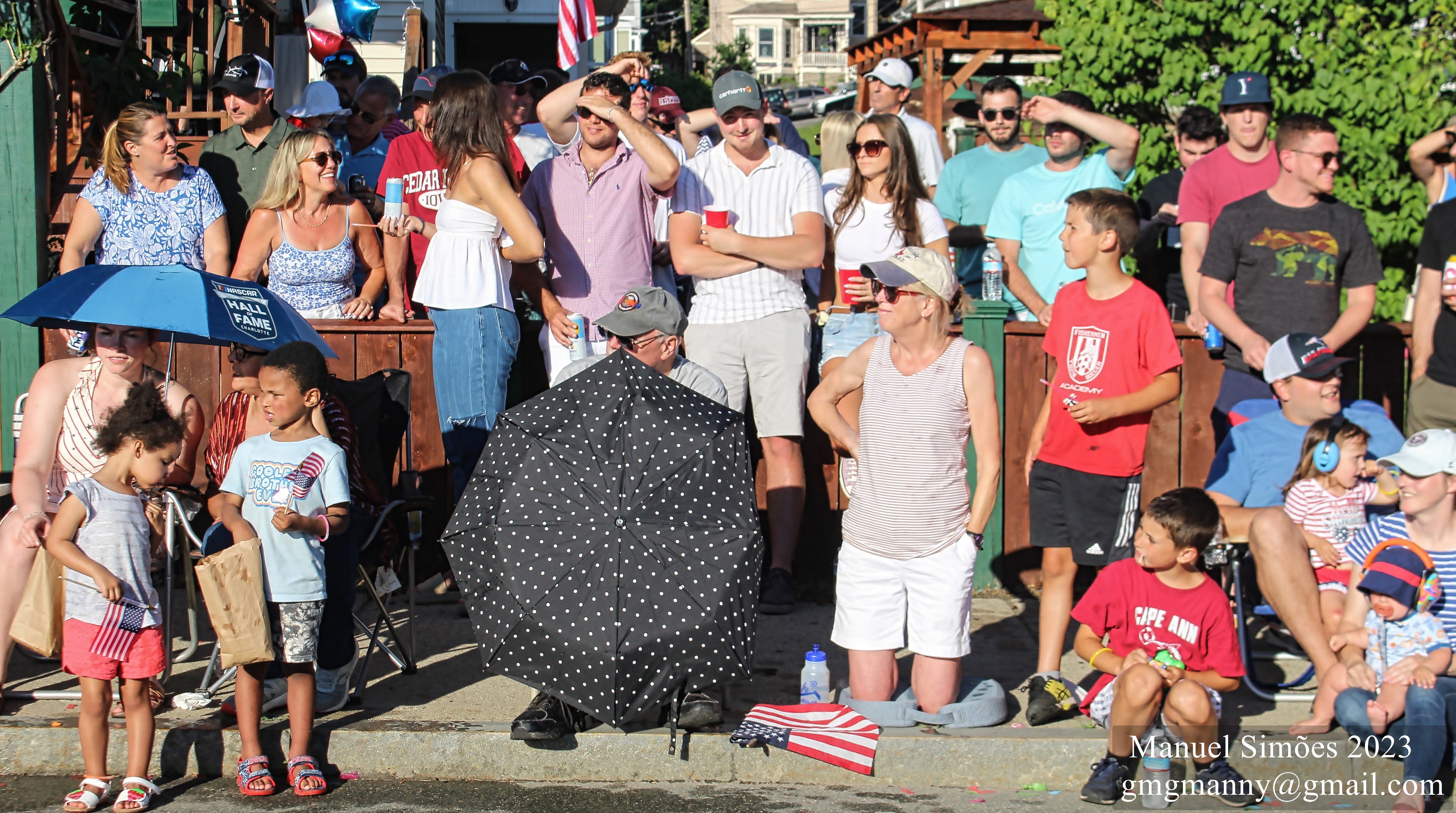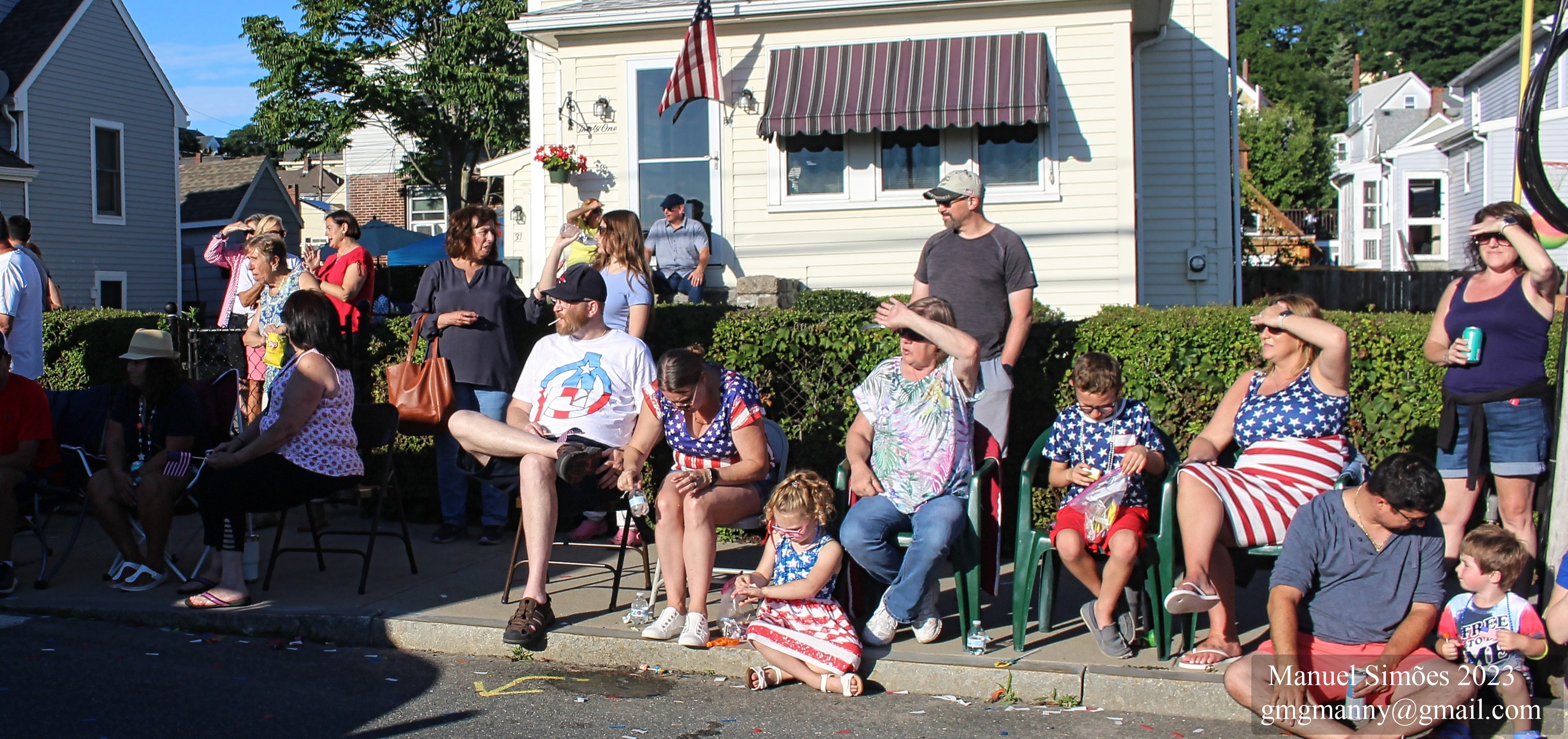 photo: red, white, blue Long Beach cottages, Rockport July 2023