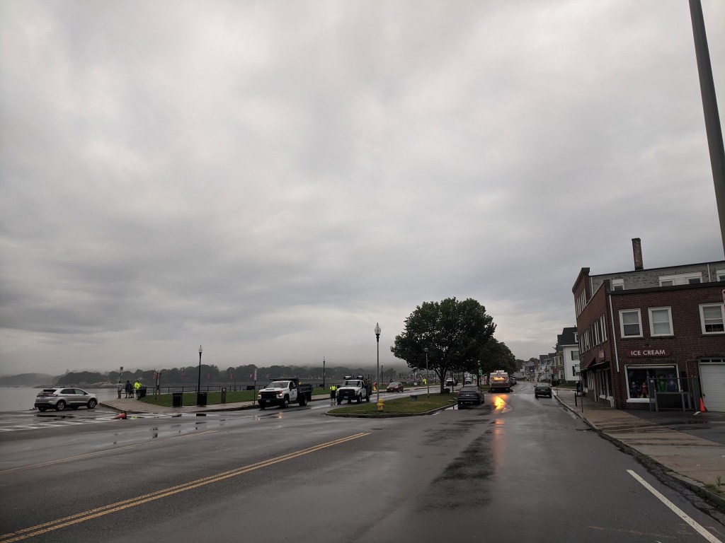 Gloucester, Mass. July 4, 2023. Over Under on the weather is unclear but one thing is certain. DPW is there or already been there! photos – Rogers, Stacy Boulevard/Western Ave, Good Harbor Beach.